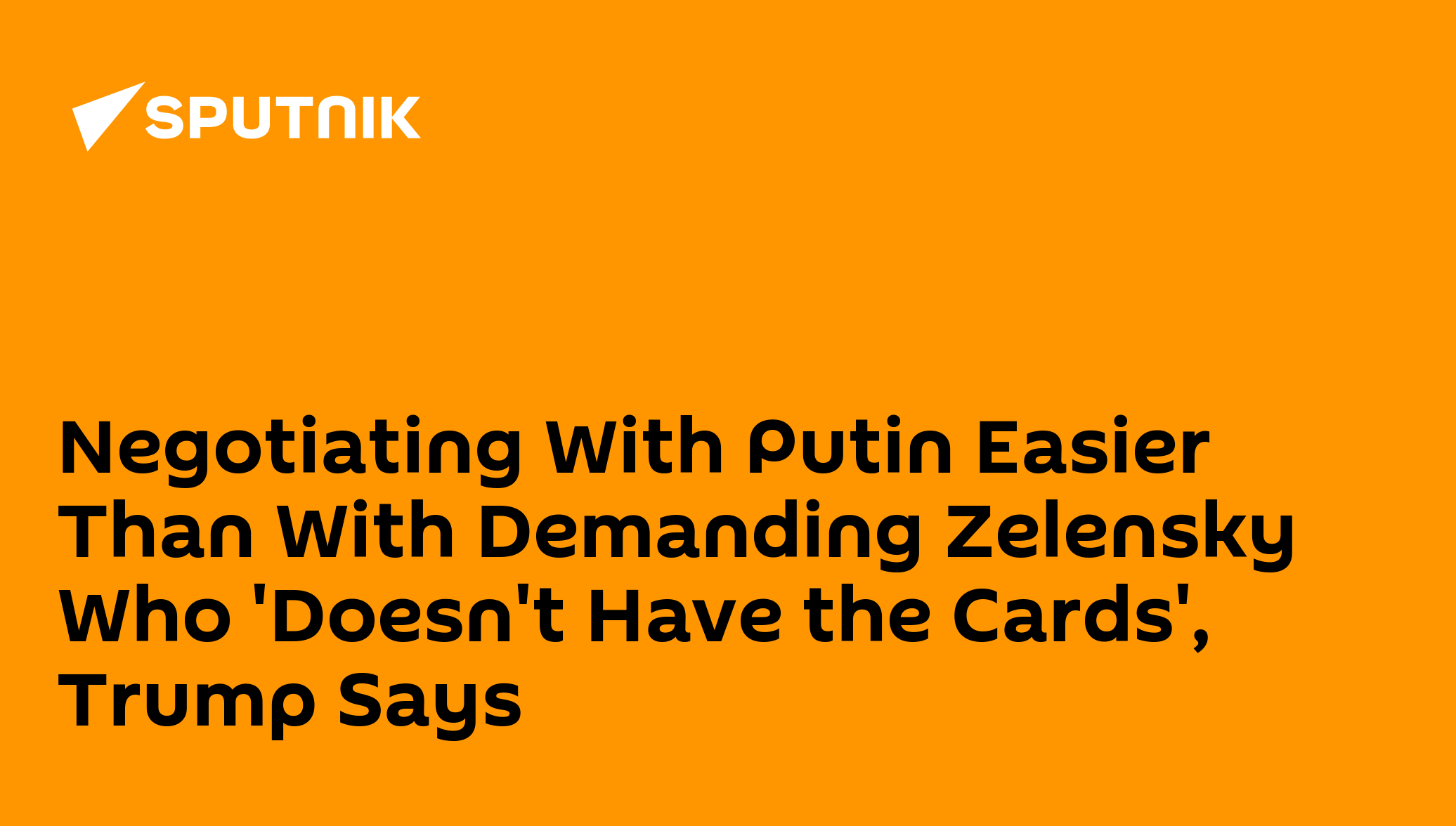 Negotiating With Putin Easier Than With Demanding Zelensky Who 'Doesn't Have the Cards', Trump Says