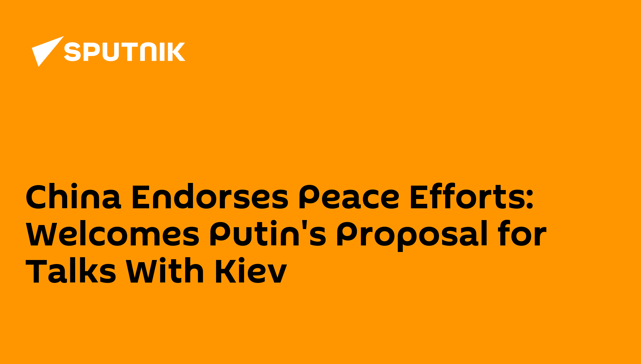 China Endorses Peace Efforts: Welcomes Putin's Proposal for Talks With Kiev
