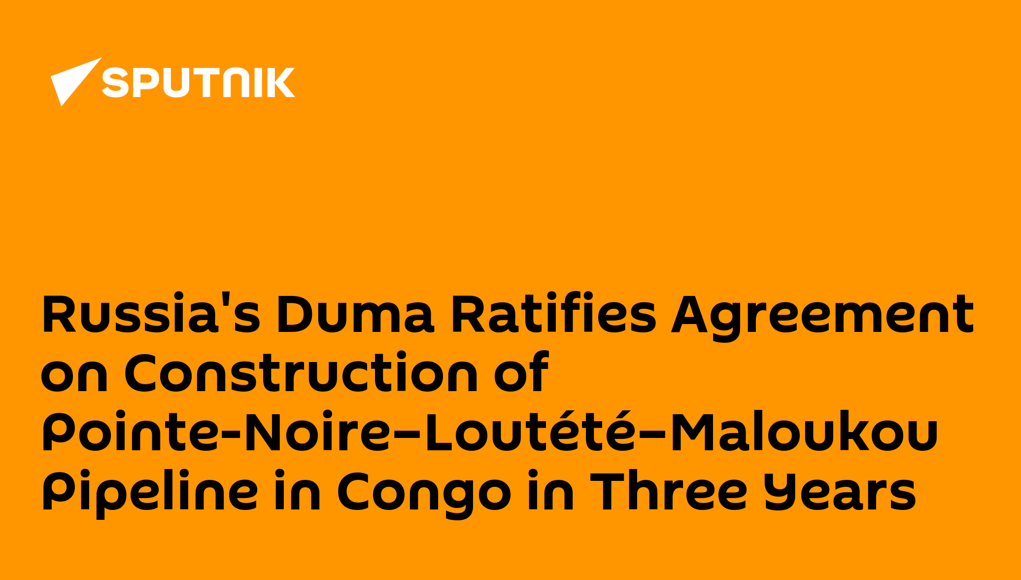 Russia's Duma Ratifies Agreement on Construction of Pointe-Noire–Loutété–Maloukou Pipeline in Congo in Three Years