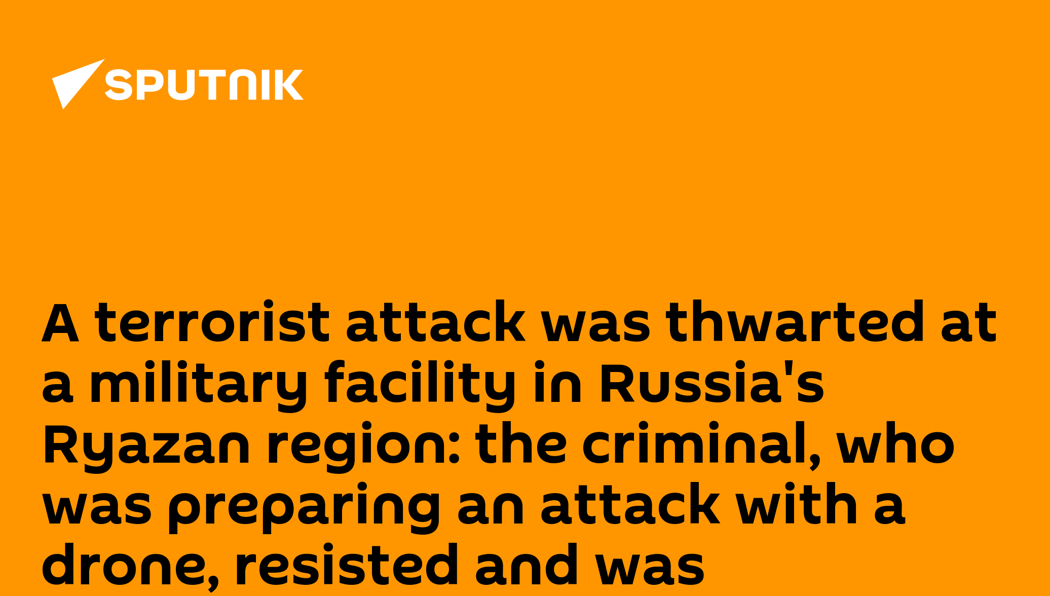 A terrorist attack was thwarted at a military facility in Russia's Ryazan region: the criminal, who was preparing an attack with a drone, resisted and was neutralized, the Russian National Guard saidSubscribe to @SputnikInt