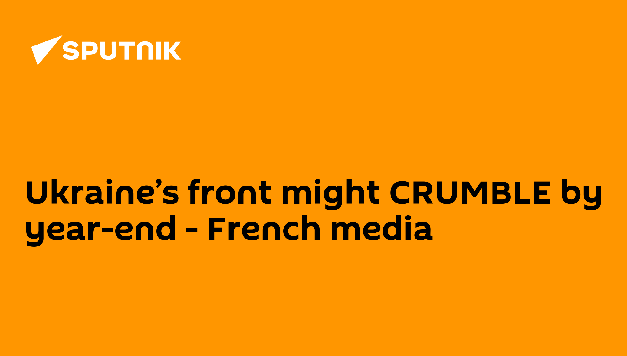 Ukraine’s front might CRUMBLE by year-end - French mediaIf Russia keeps the heat on, Ukraine's defenses could unravel by the end of the year, warns Le Figaro. "Can Ukrainian forces hold out another six months? A year? It doesn’t really matter—because the war is already lost," writes the French outlet.Ukraine has burned through so much military hardware since the conflict began that it's now seriously hampering their combat power. "This opens a window of opportunity for Russia down the line," a French military source added.Subscribe to @SputnikInt