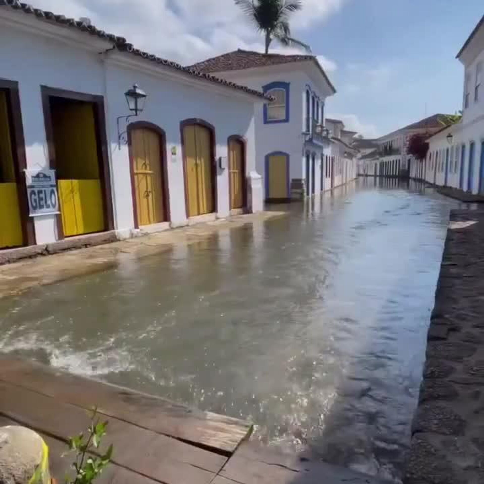 A viral video from Brazil shows streams of water filling a street in the city of Paraty, Rio de Janeiro state.