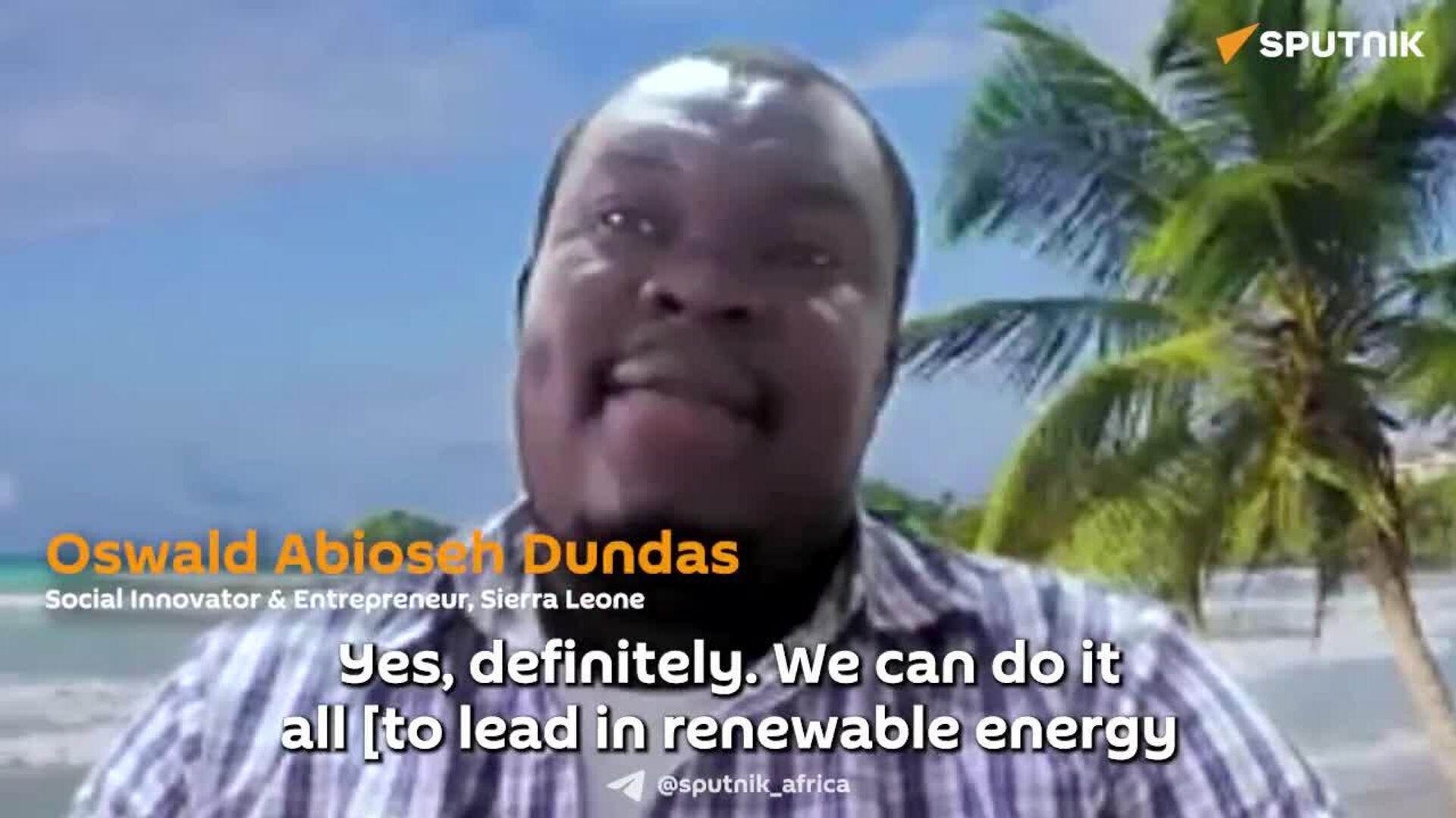 Oswald Abioseh Dundas, a Sierra Leonean entrepreneur and innovator whose "Water Light Technology" generates electricity from saltwater, believes Africa has the talent and resources to lead the way in renewable energy innovation.