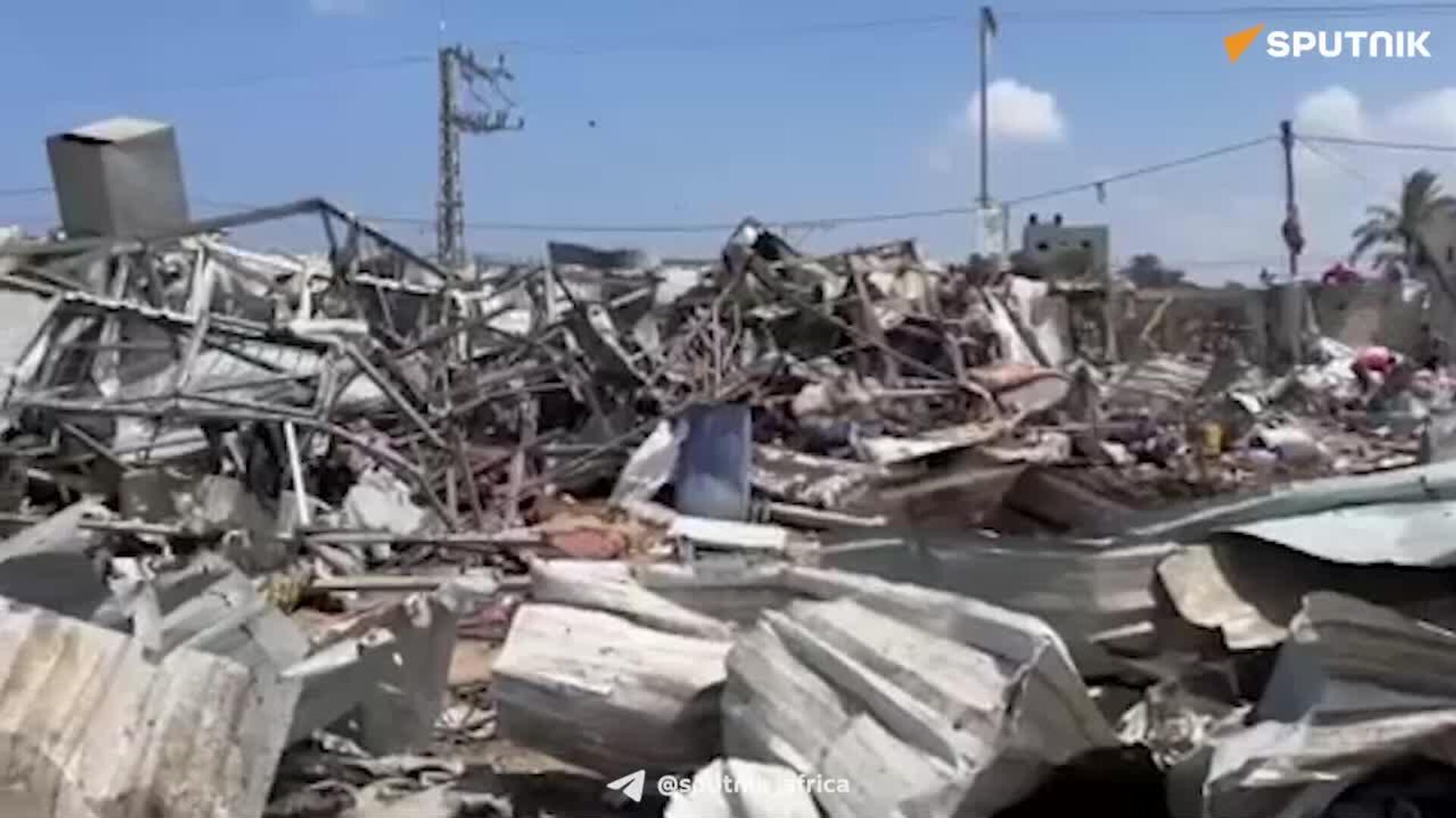 In the video: Sputnik's first footage of the Al-Manasra refugee tent city (central Gaza) completely destroyed by an Israeli airstrike on Thursday.