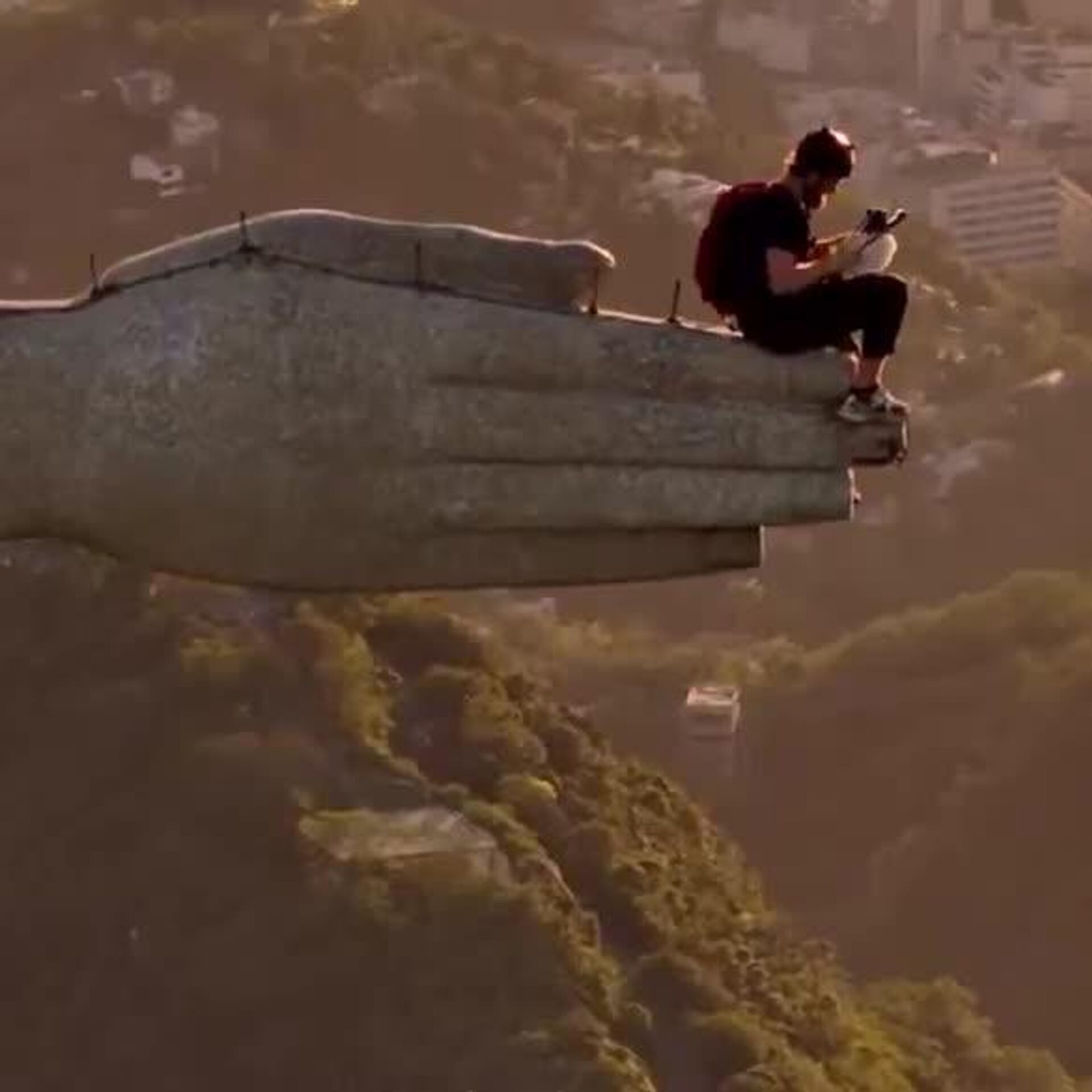 🪂 The man climbed the 38-meter-high statue and jumped from the monument's arm with a parachute.