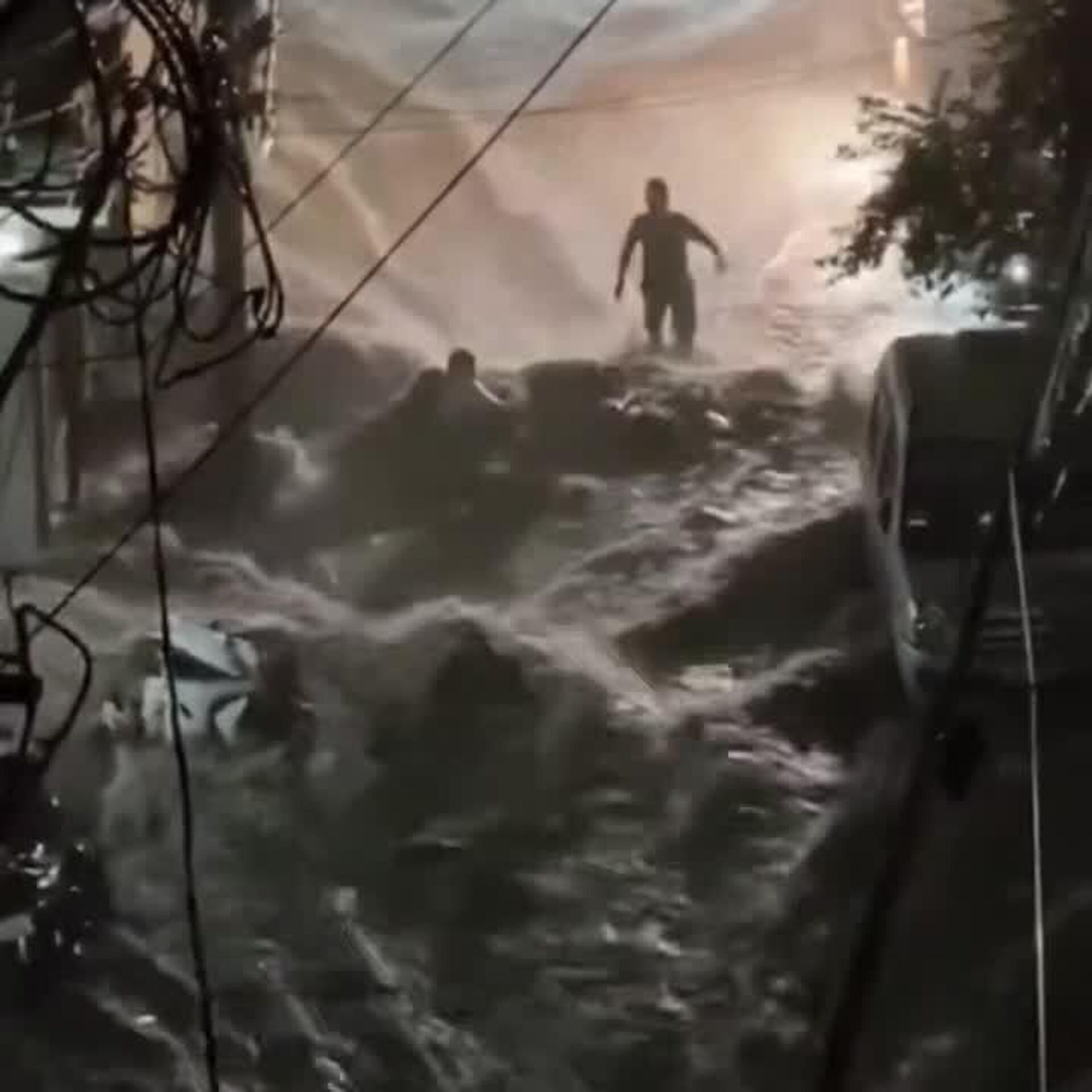 #viral | Hero in the Flood: Man Saves Motorcyclist from Powerful Water SurgeHyderabad, IndiaSubscribe to @sputnik_africa Sputnik Africa | X