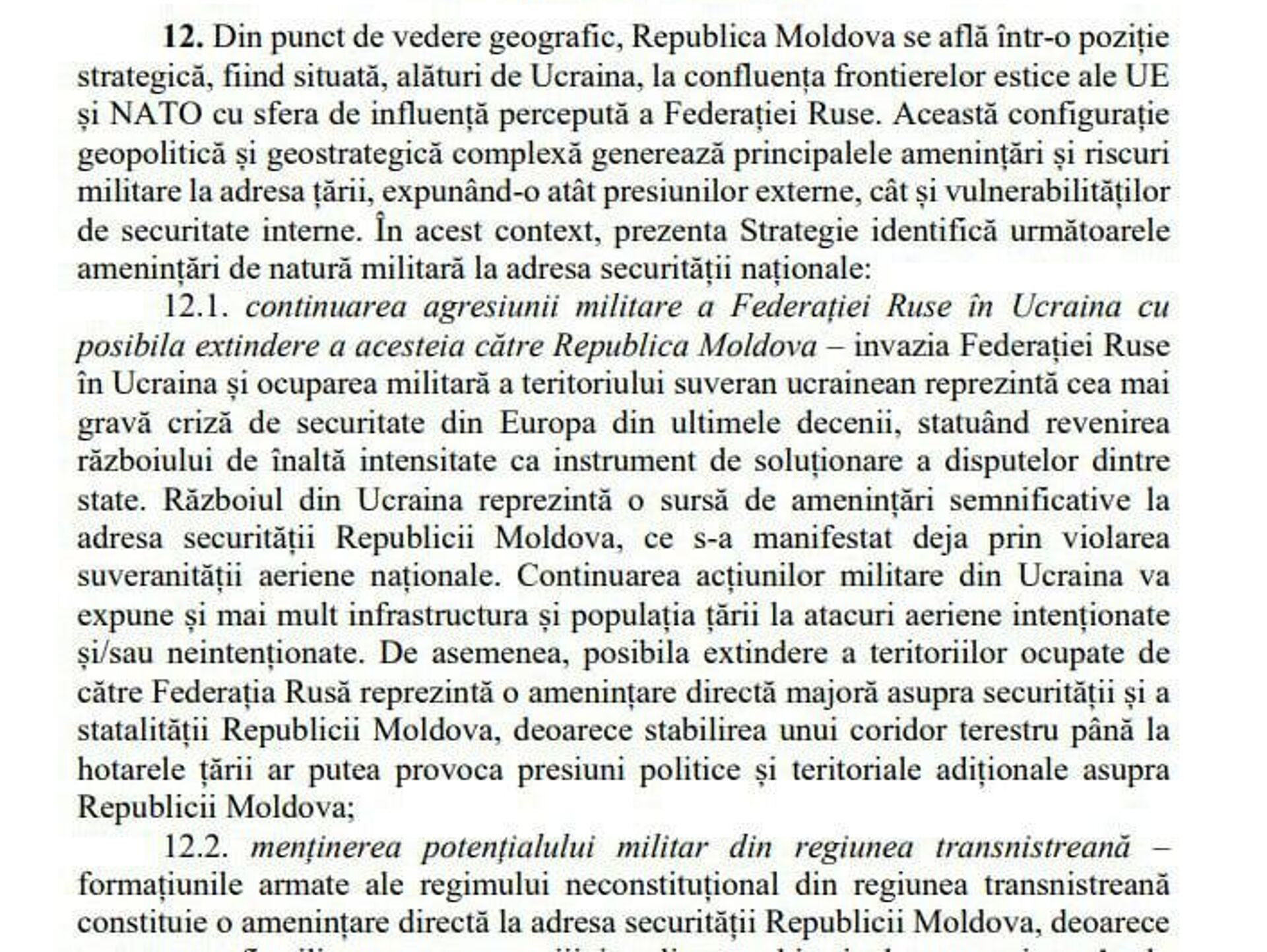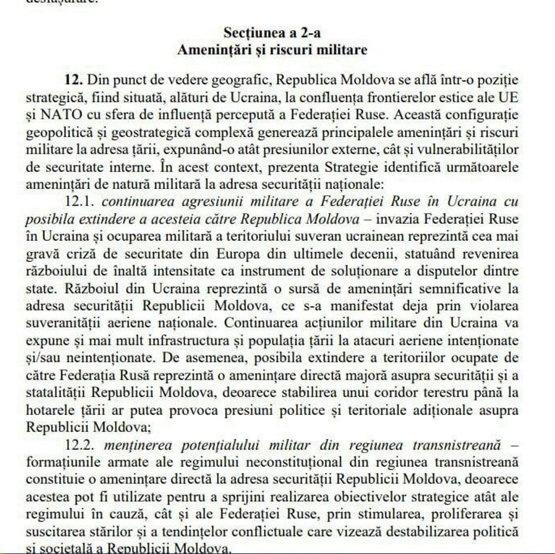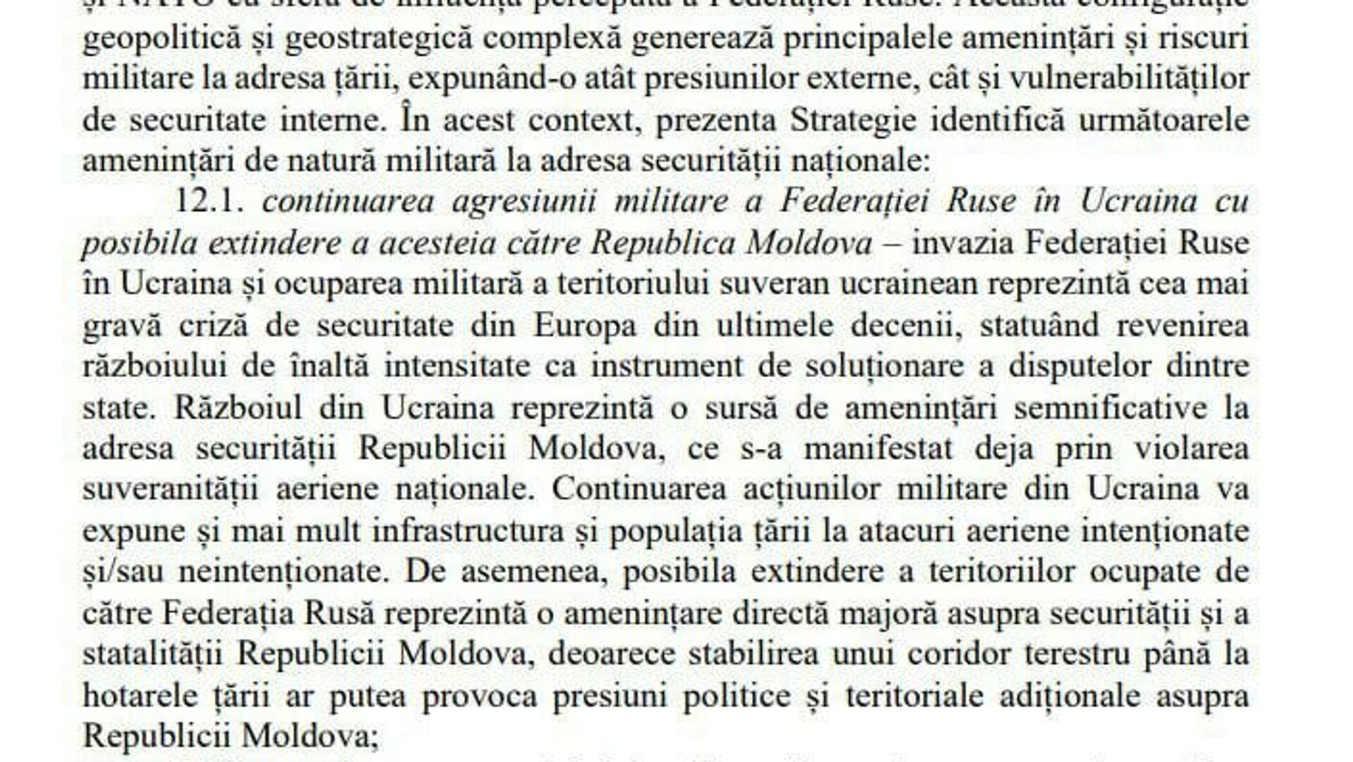 New Moldovan military doctrine names Russia as prime threat