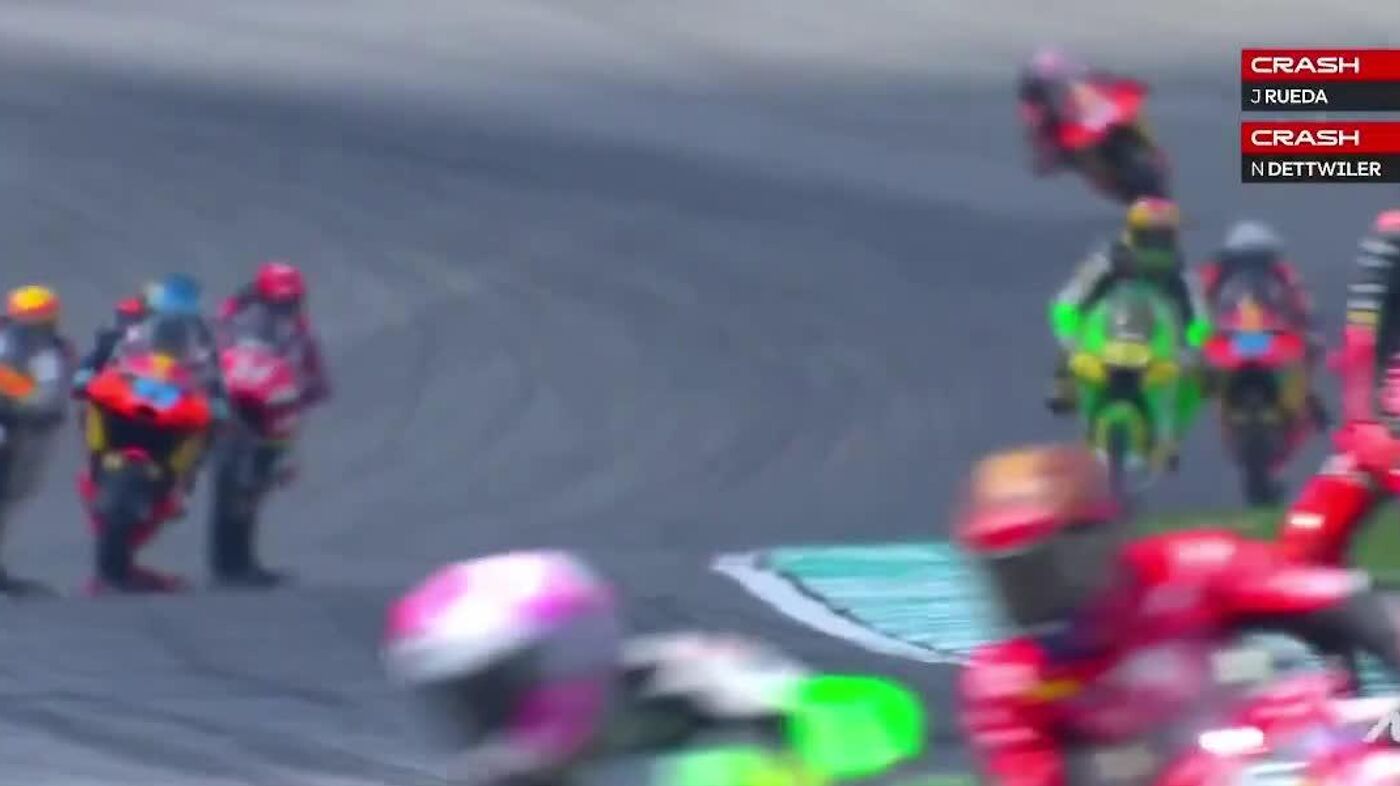Spanish rider José Antonio Rueda, who became champion earlier this season, crashed into Swiss rider Noah Dettwiler's motorcycle at high speed while warming up on the Sepang racetrack.