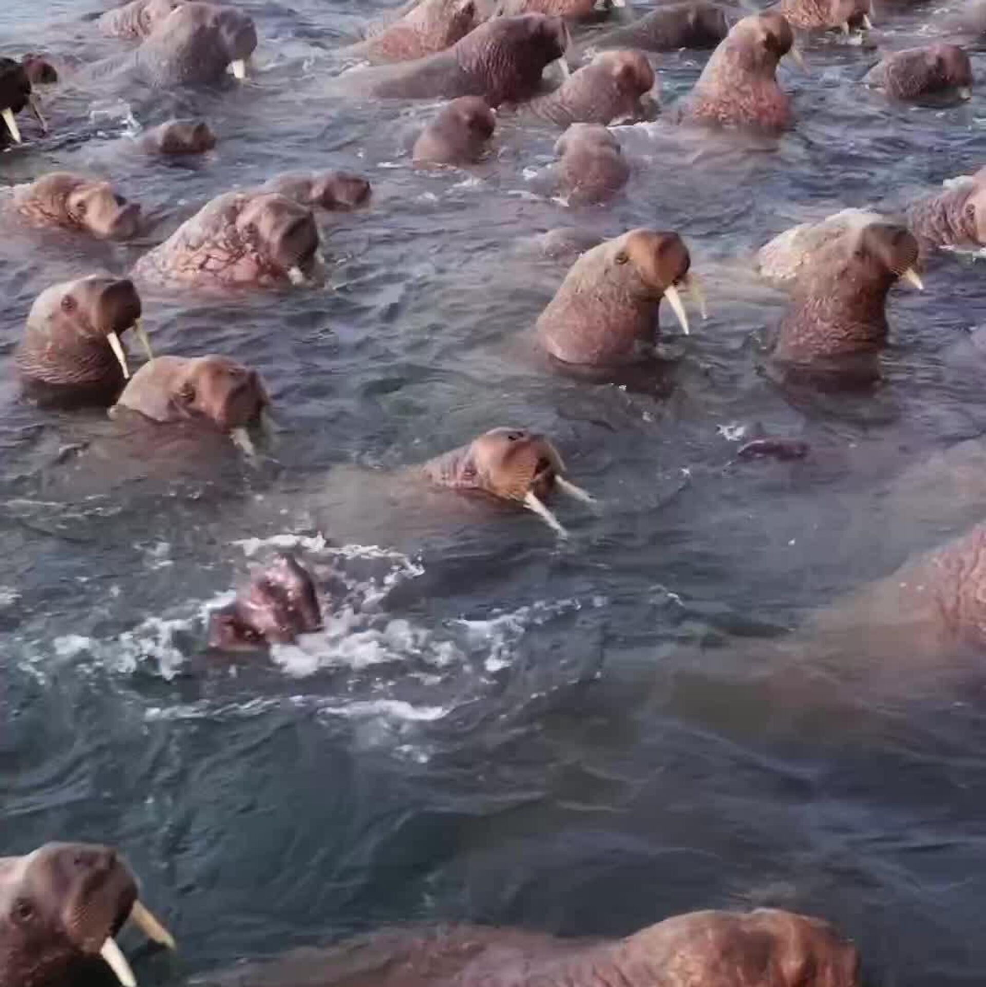 In the waters around Ratmanov Island—a remote Russian isle just 2.4 miles from Alaska—hundreds of walruses rest peacefully.