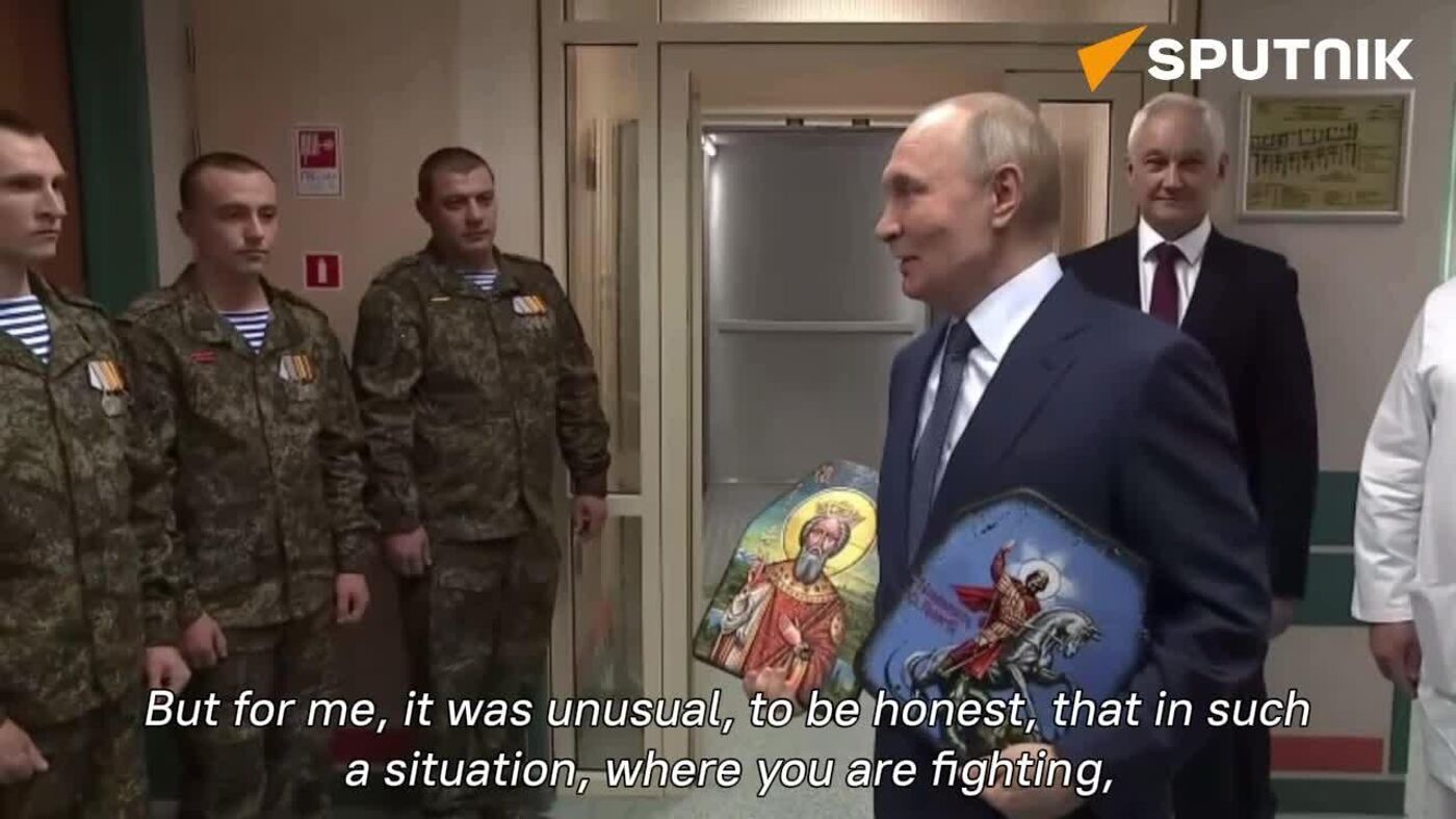 During a visit to Moscow’s Central Military Clinical Hospital, President Vladimir Putin personally thanked Russian servicemen recovering from combat for a deeply symbolic birthday gift: icons pierced by bullets.