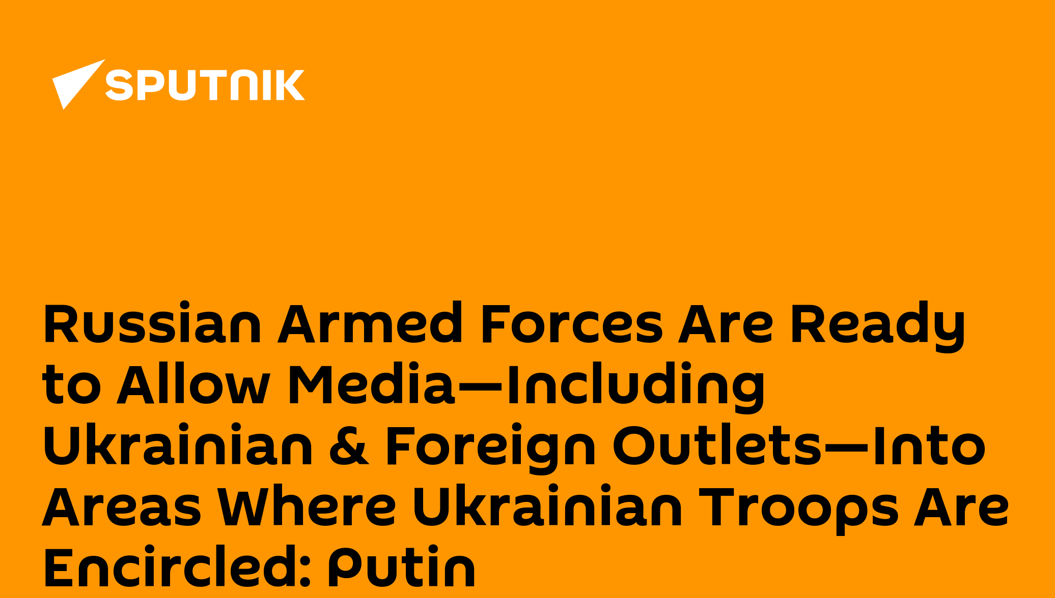 Russian Armed Forces Are Ready to Allow Media—Including Ukrainian & Foreign Outlets—Into Areas Where Ukrainian Troops Are Encircled: Putin