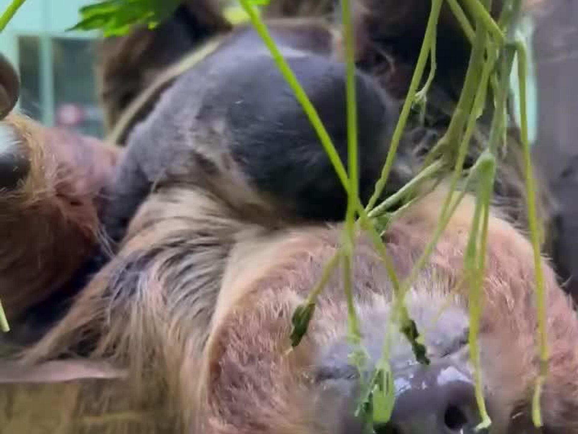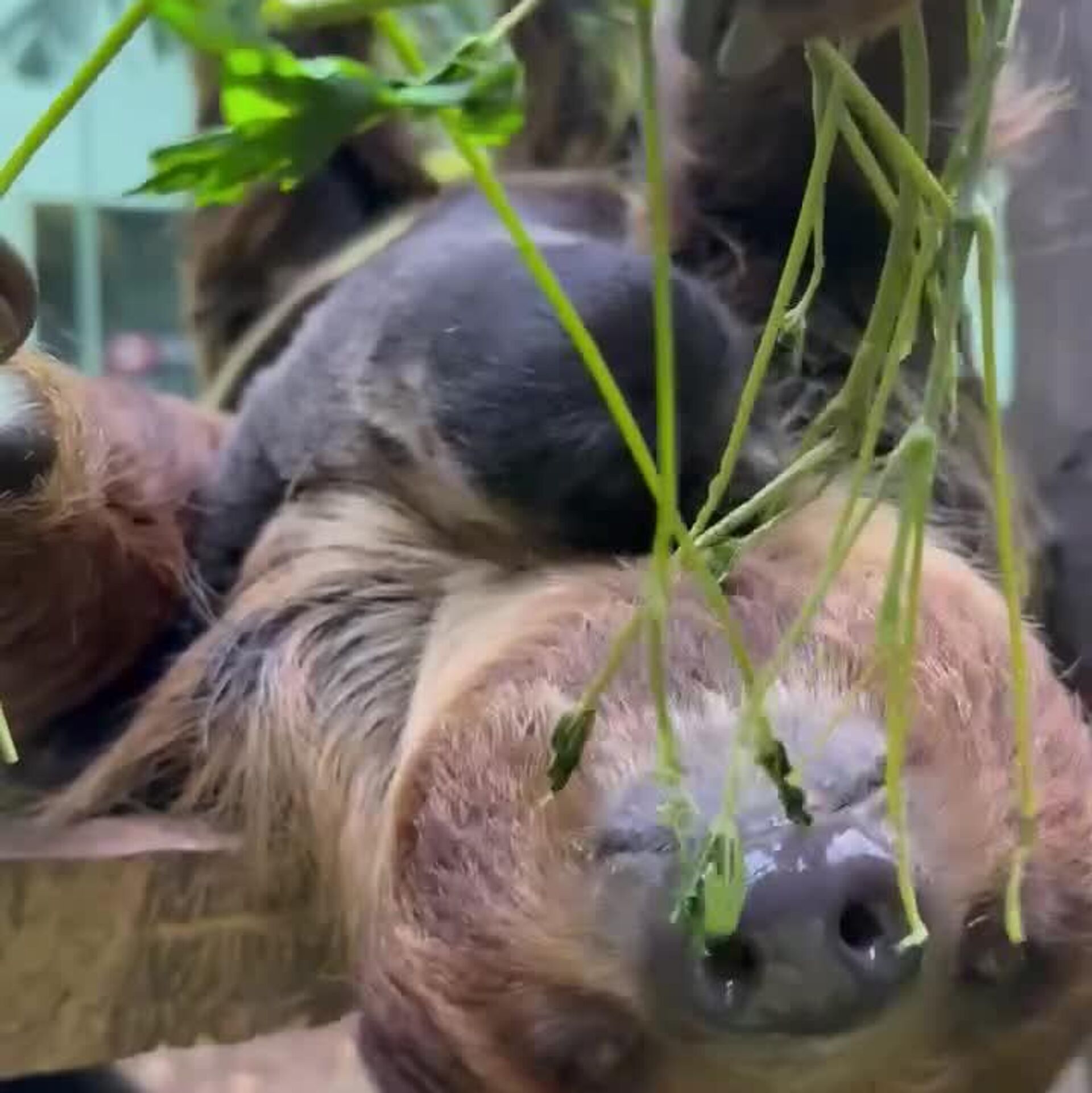20:01 01.11.2025 (Updated: 20:04 01.11.2025) #viral | Breakfast at Zoo: Baby Sloth Enjoys Fresh Leaves With Its Mother