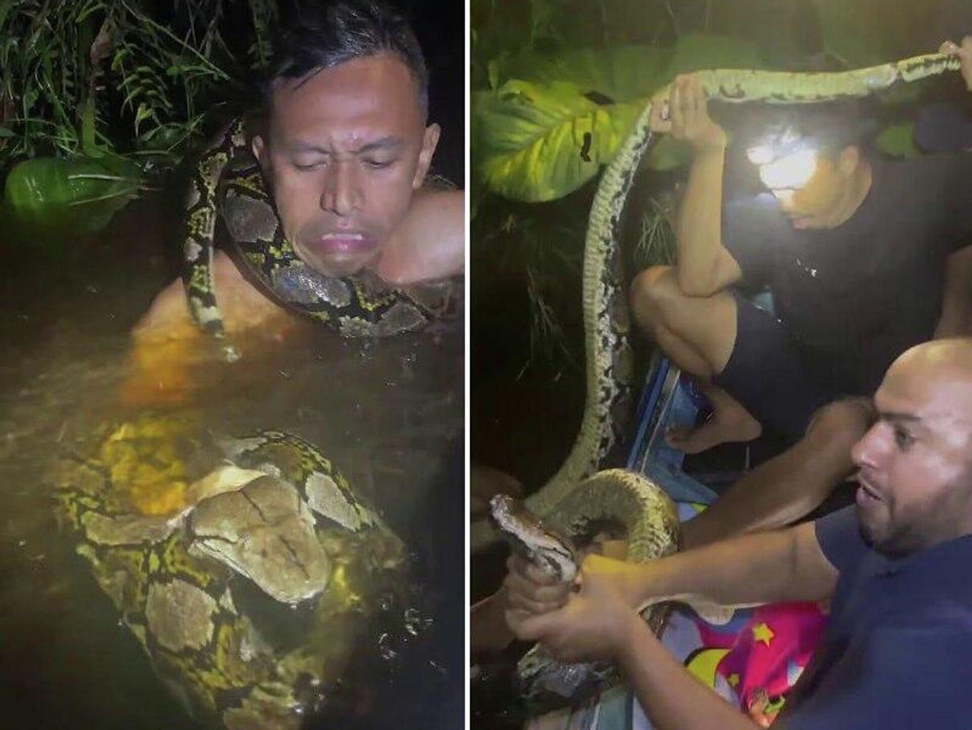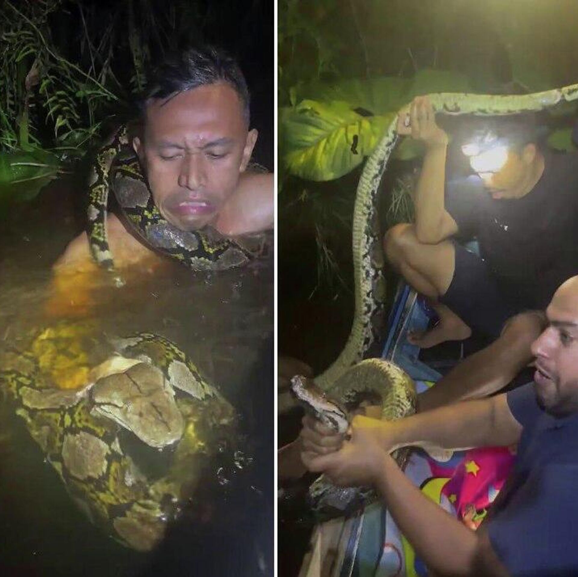 After being freed, the men released the python back into the wild, having first taken commemorative photos with it.