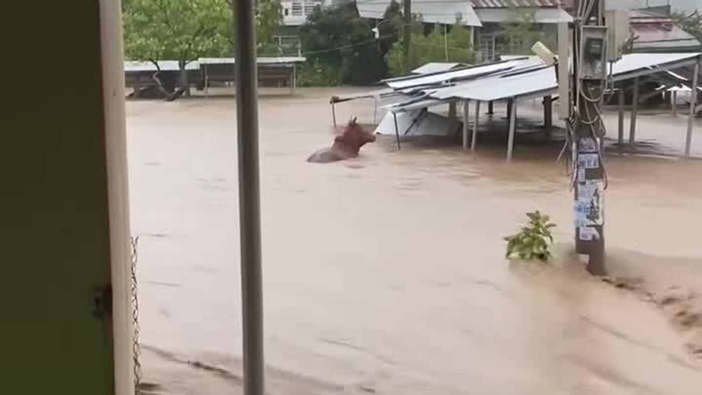 Online videos even show cows seeking refuge on rooftops to escape the rising waters.