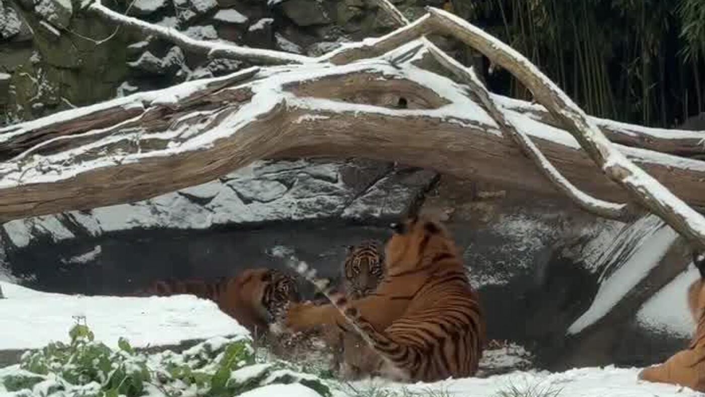 #viral | Polish Zoo's Tigers Make Their Winter Debut in Enchanting First-Snow VideoSubscribe to @sputnik_africa Sputnik Africa | X