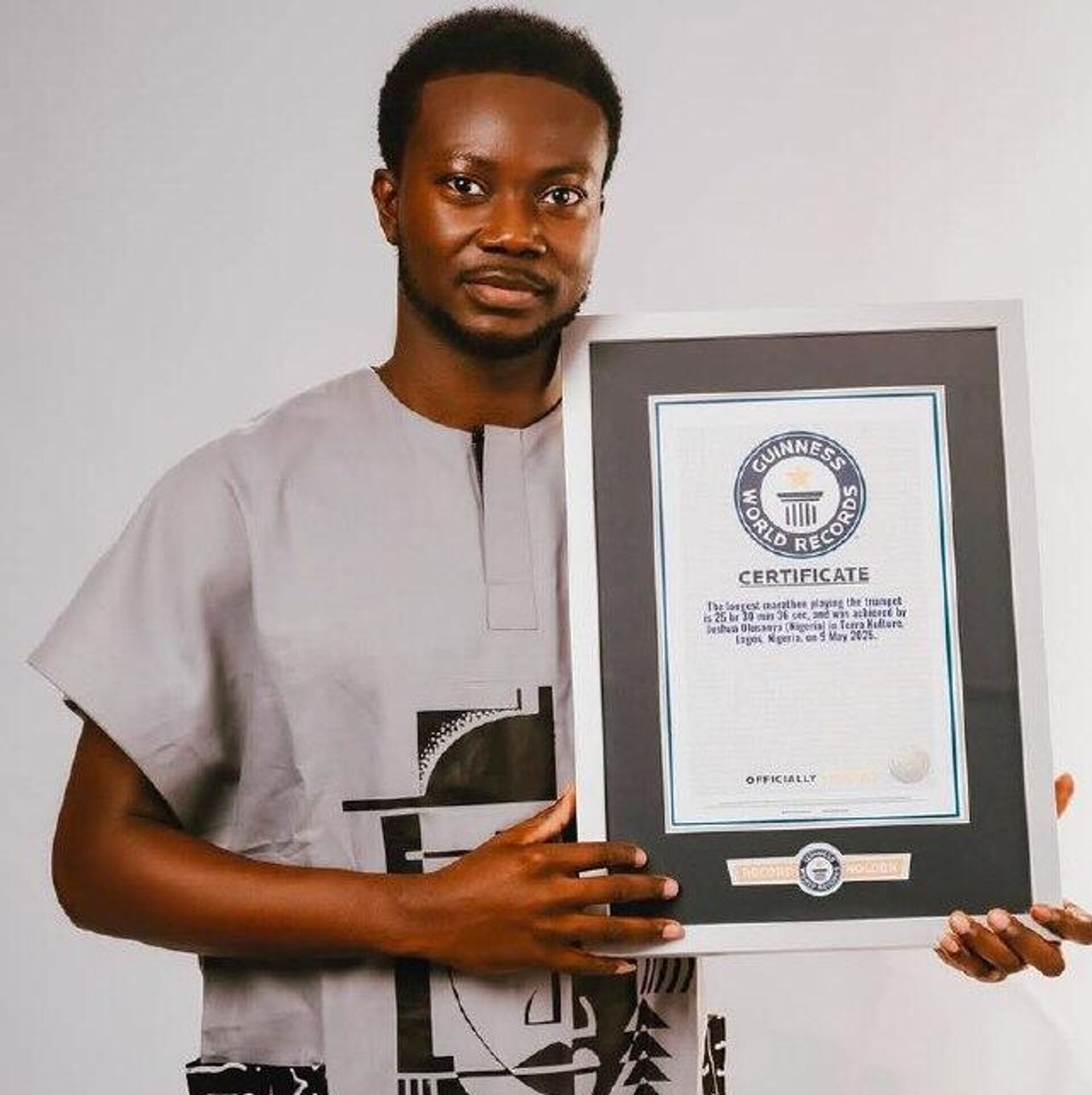 🟠Joshua Olusanya (Trumpeter) – Completed the longest continuous trumpet playing marathon (25 hrs, 30 min).