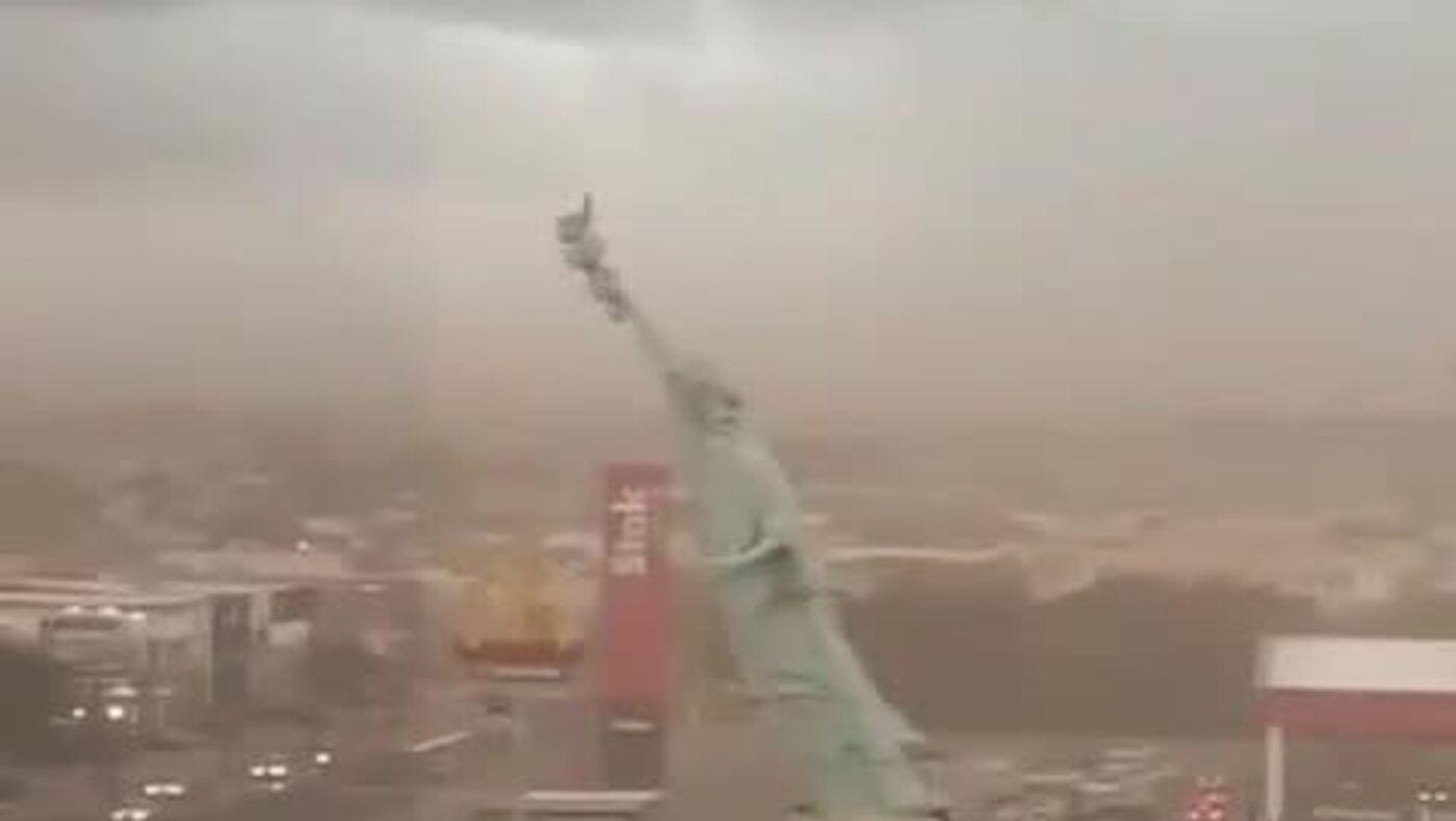 #viral | Giant Replica of Statue of Liberty Toppled by Storm in Brazil