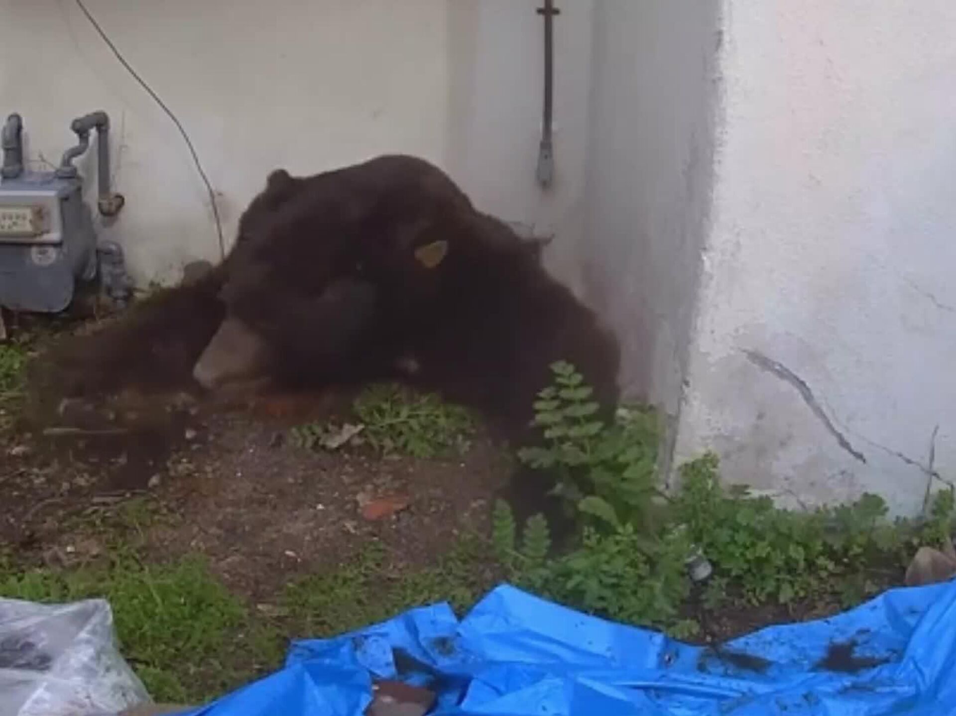 In the end, he solved the problem himself: he fired paintballs filled with vegetable oil, which scared the bear and caused it to leave the basement in just 20 minutes.