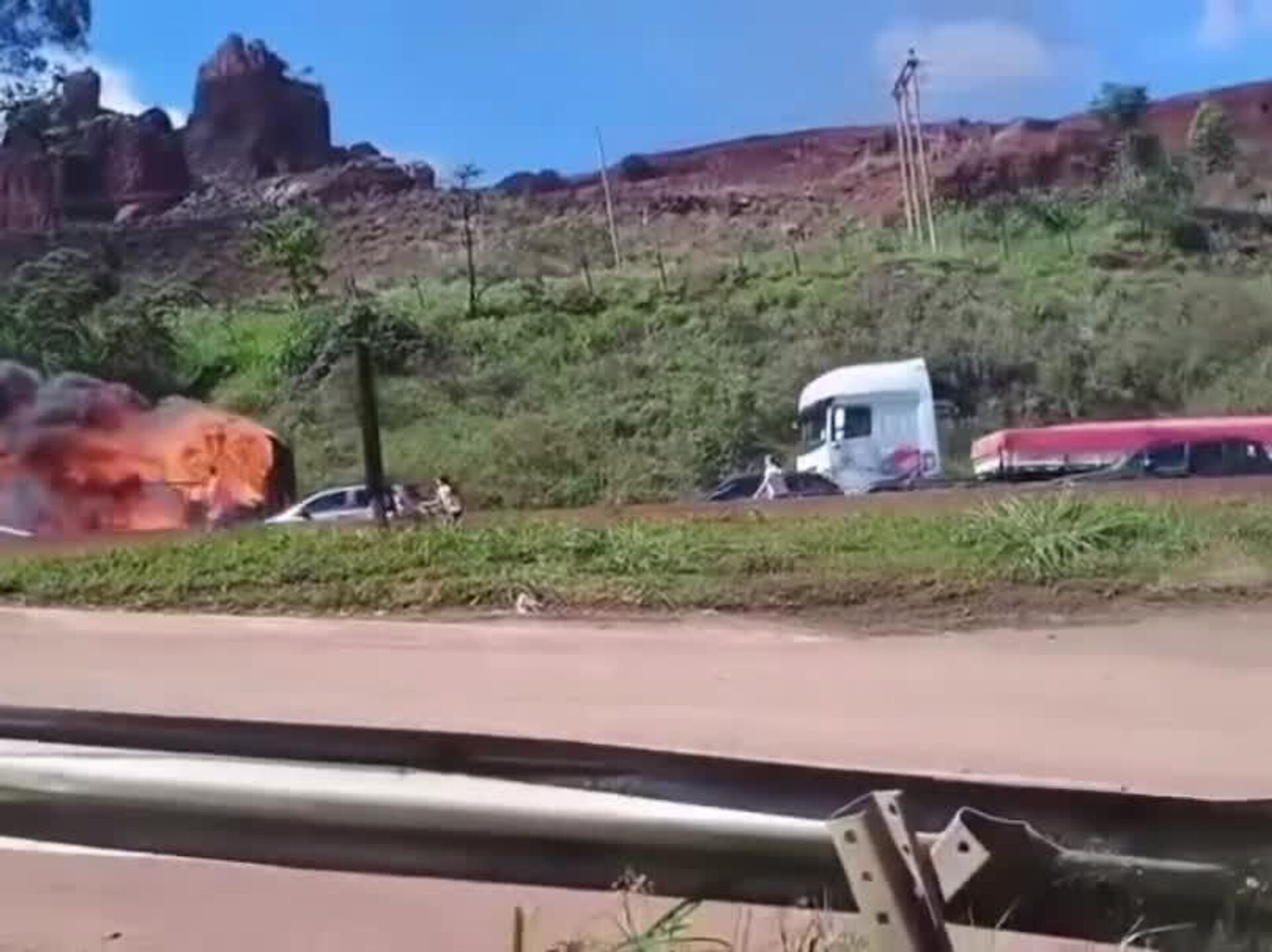 #viral | Fireball on Wheels: Tourist Bus Bursts Into Flames in the Middle of Brazilian Highway