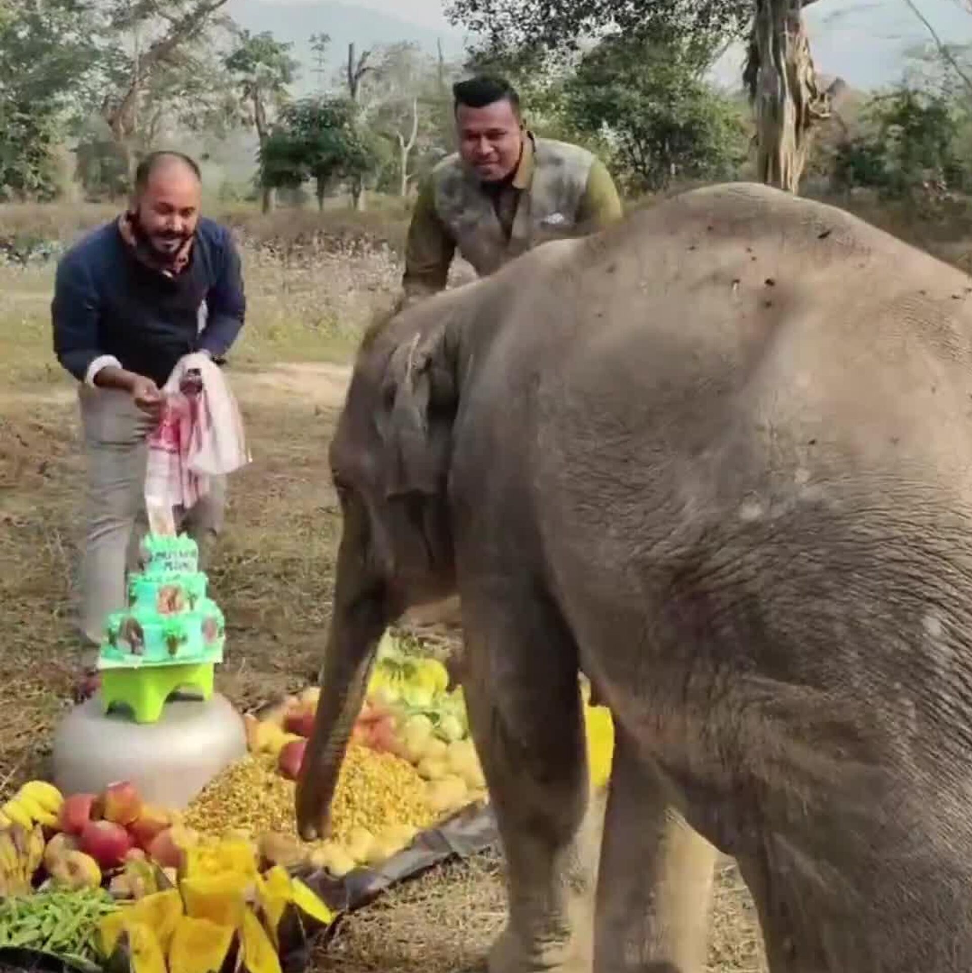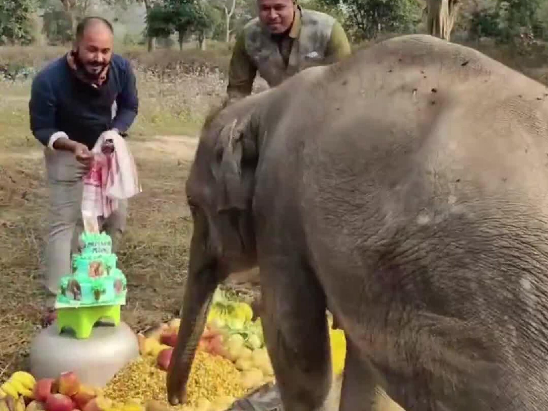#viral | Birthday to Remember: Keepers Celebrating Baby Elephant’s First Birthday In a heartwarming clip that’s sweeping the internet, mahouts at a national park in India, throw a sweet first birthday party for baby elephant Priyanshi—complete with a fruit-filled cake and joyful blessings.Subscribe to @sputnik_africa Sputnik Africa | X