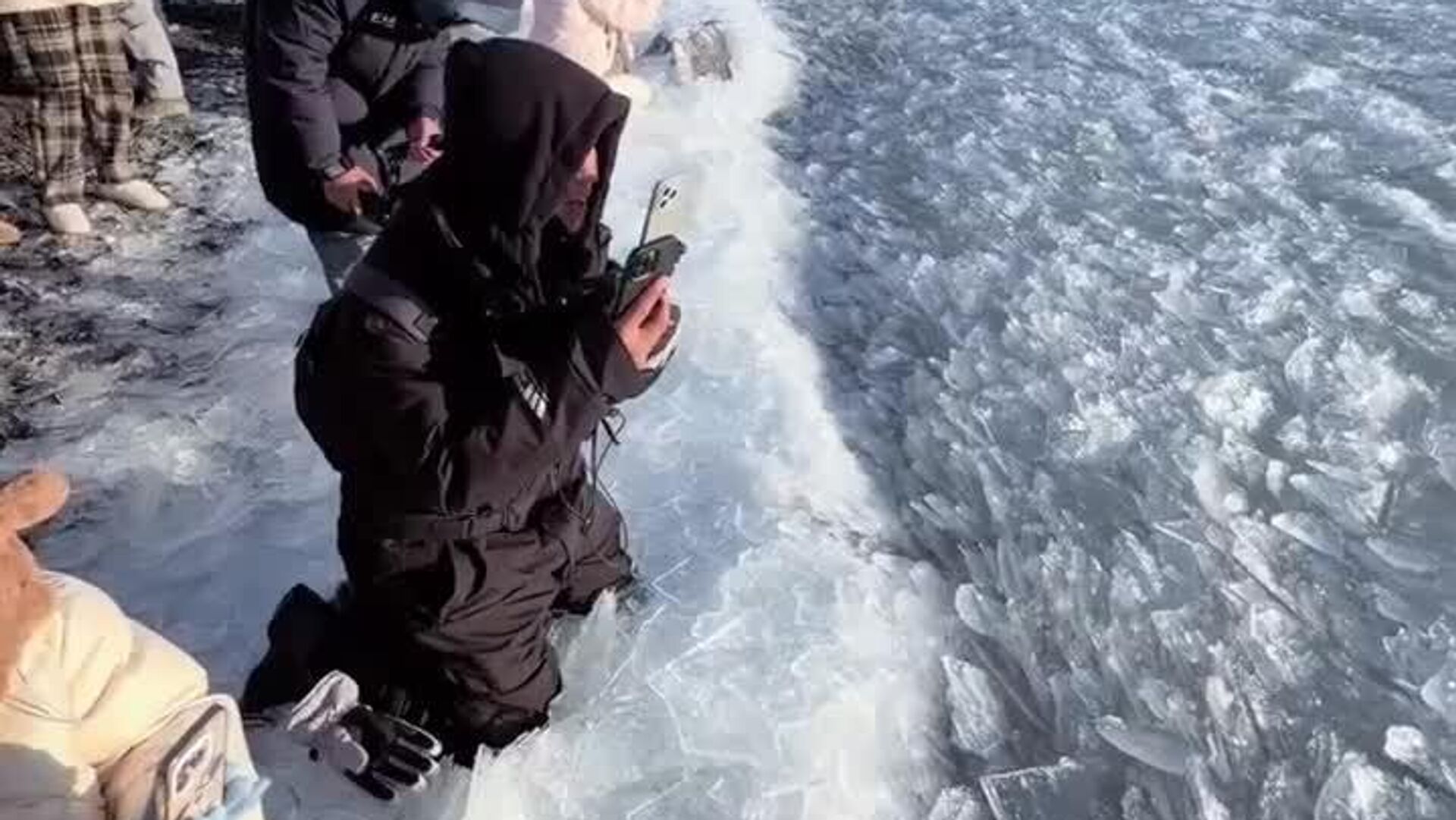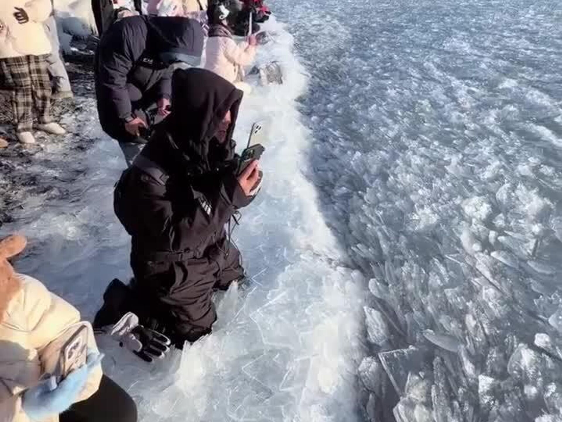 This type of ice, called an ice ridge, forms when thin sheets on the lake’s surface, pushed by wind or currents, collide, break apart, and merge into flowing masses of ice floes.