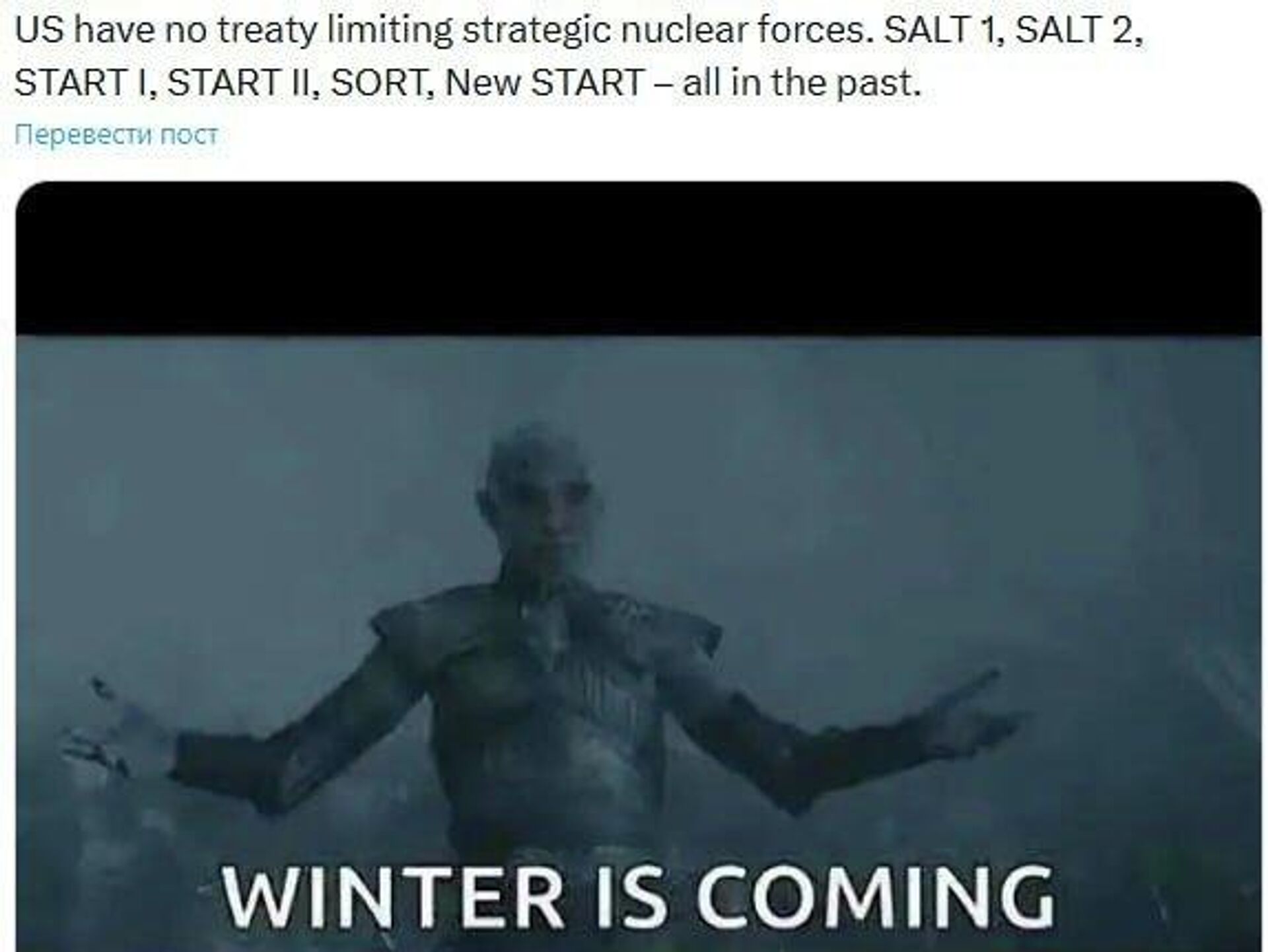 'Winter is Coming': Deputy Chairman of Russian Security Council Comments on Expiration of New START TreatySubscribe to @sputnik_africa Sputnik Africa | X