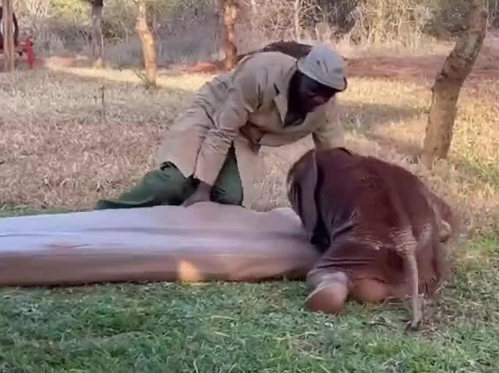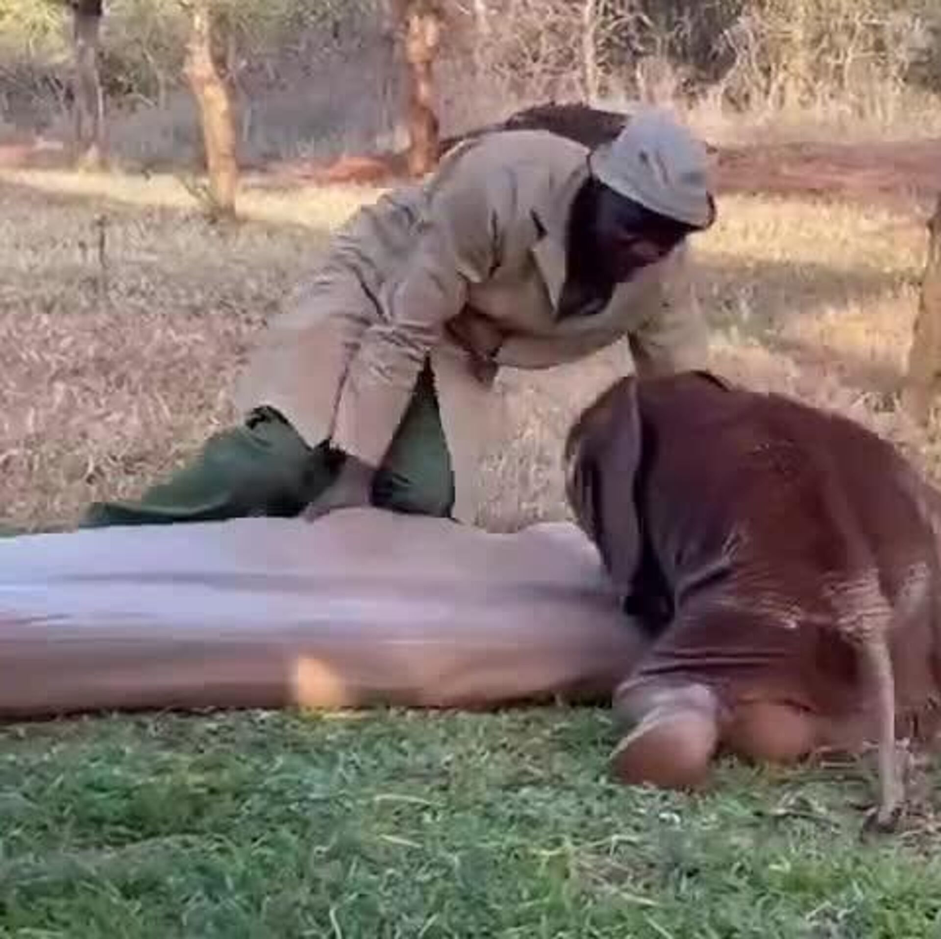 #viral | May Someone Care for Your Rest as Gently as This Keeper Cares for His Orphaned Elephant CalfAt a nursery in Kenya, he dragged a mattress onto the grass so the little one could rest soundly.Good night to our dear subscribers from Sputnik Africa Subscribe to @sputnik_africa Sputnik Africa | X