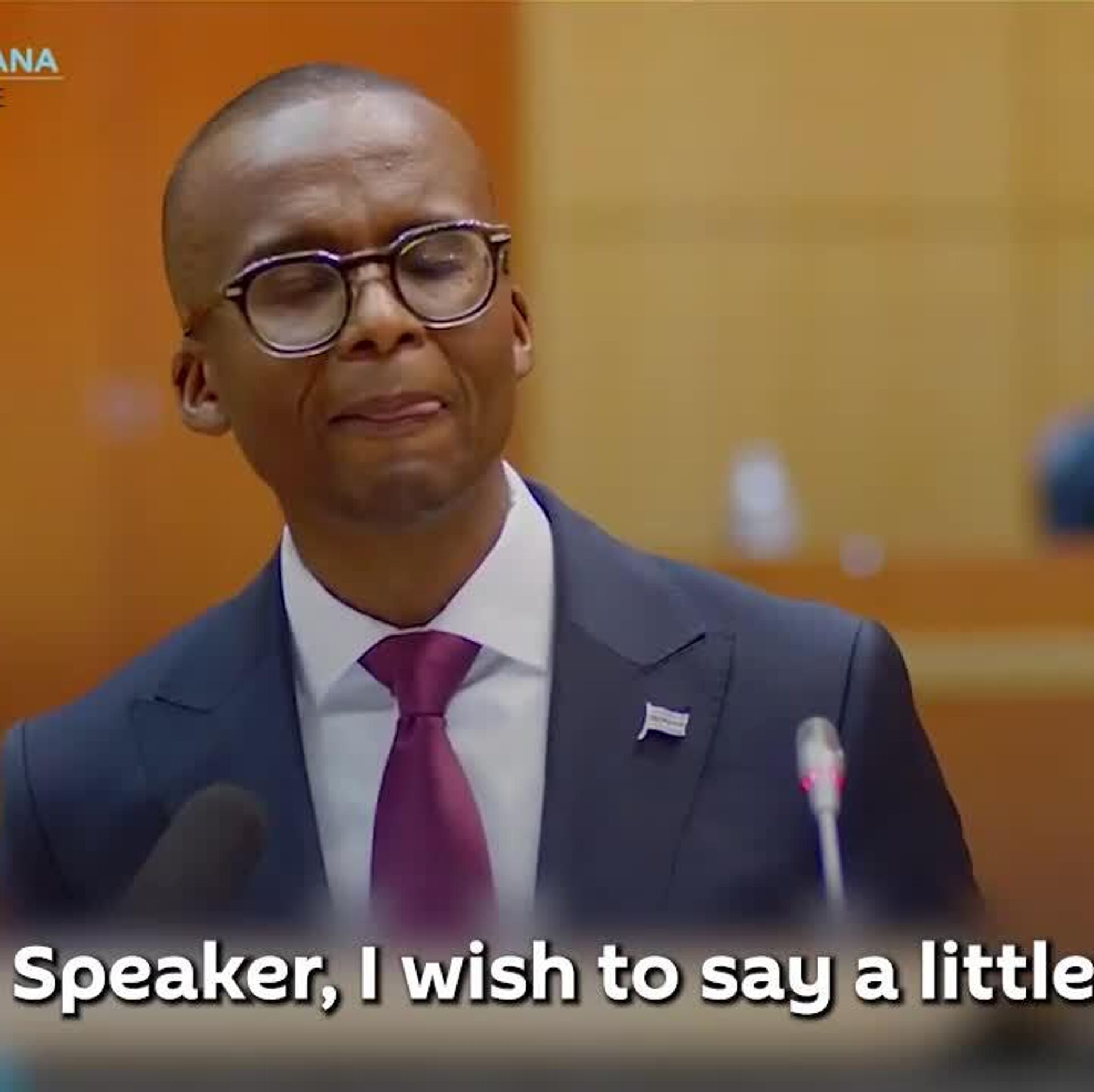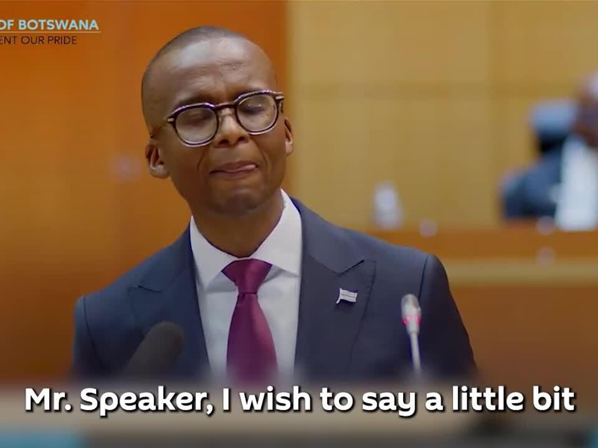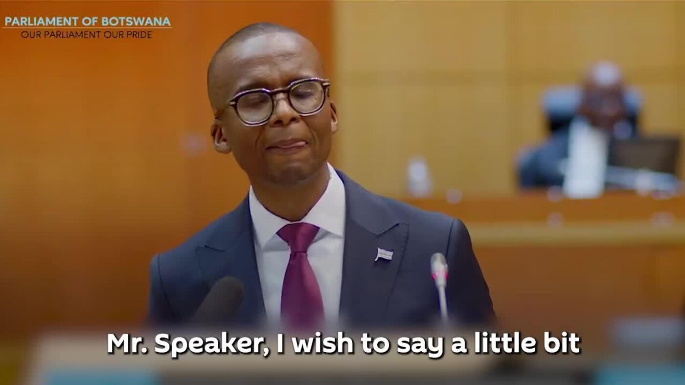 The video shows highlights from Gaolathe's budget speech at the Botswana Parliament