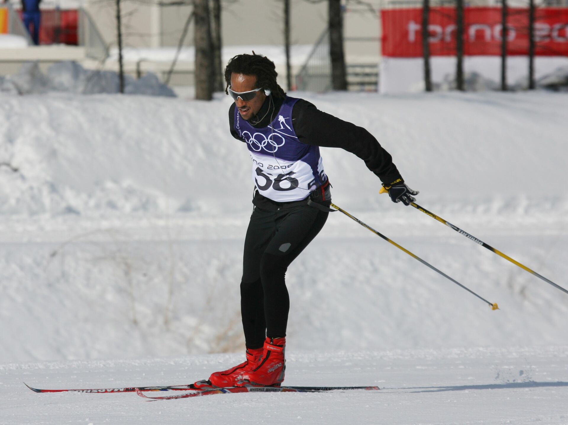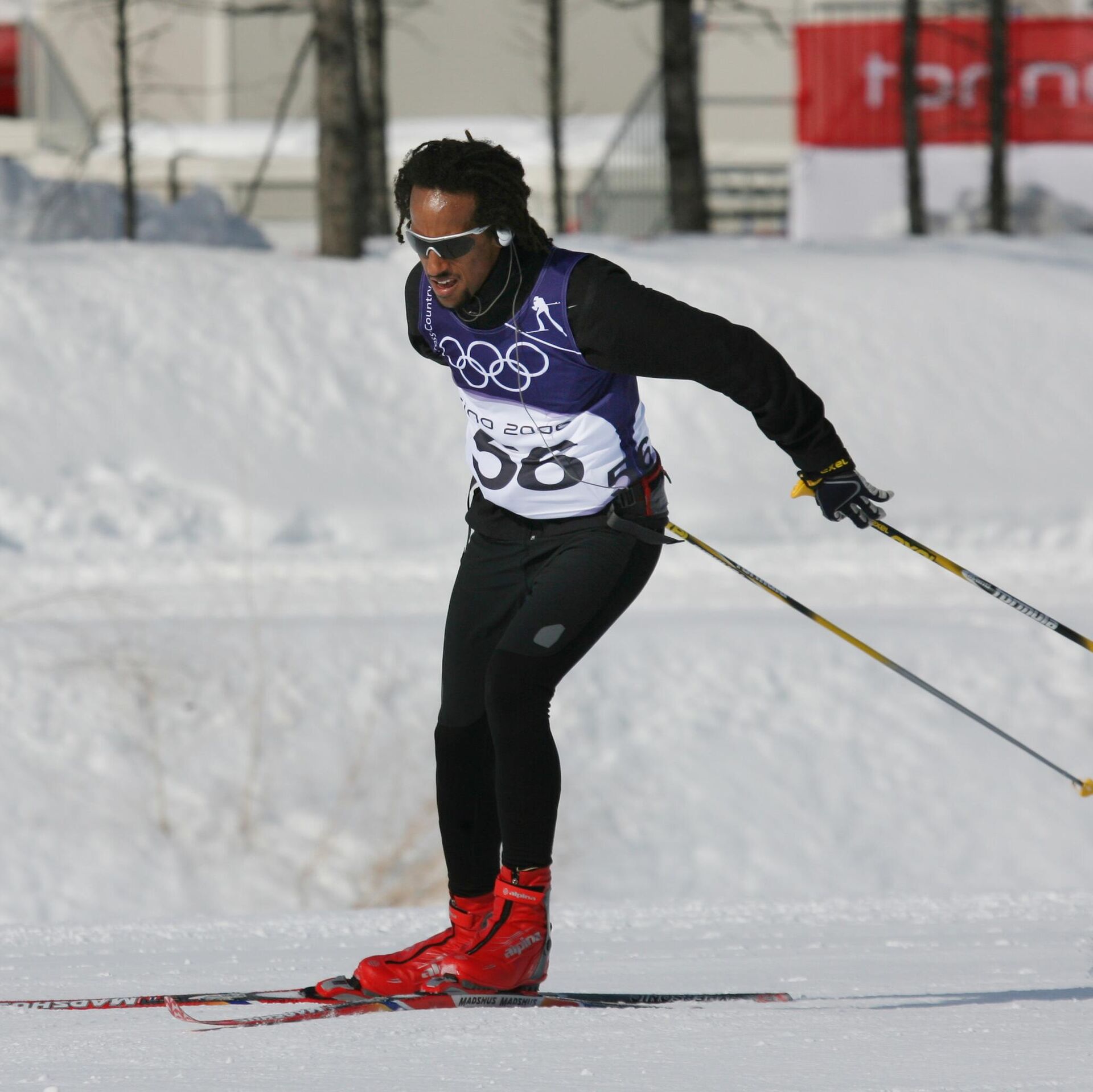 Robel Teklemariam of Ethiopia skis during a training at the Turin 2006 Winter Olympic Games in Pragelato Plan, Italy, in this Tuesday Feb 7, 2006 file photo. Teklemariam is one of four skiers who received five-day suspensions Friday, Feb 10, 2006, for registering high levels of hemoglobin in their blood, bringing the total to 12 in two days. (AP Photo/ Andrew Medichini)
