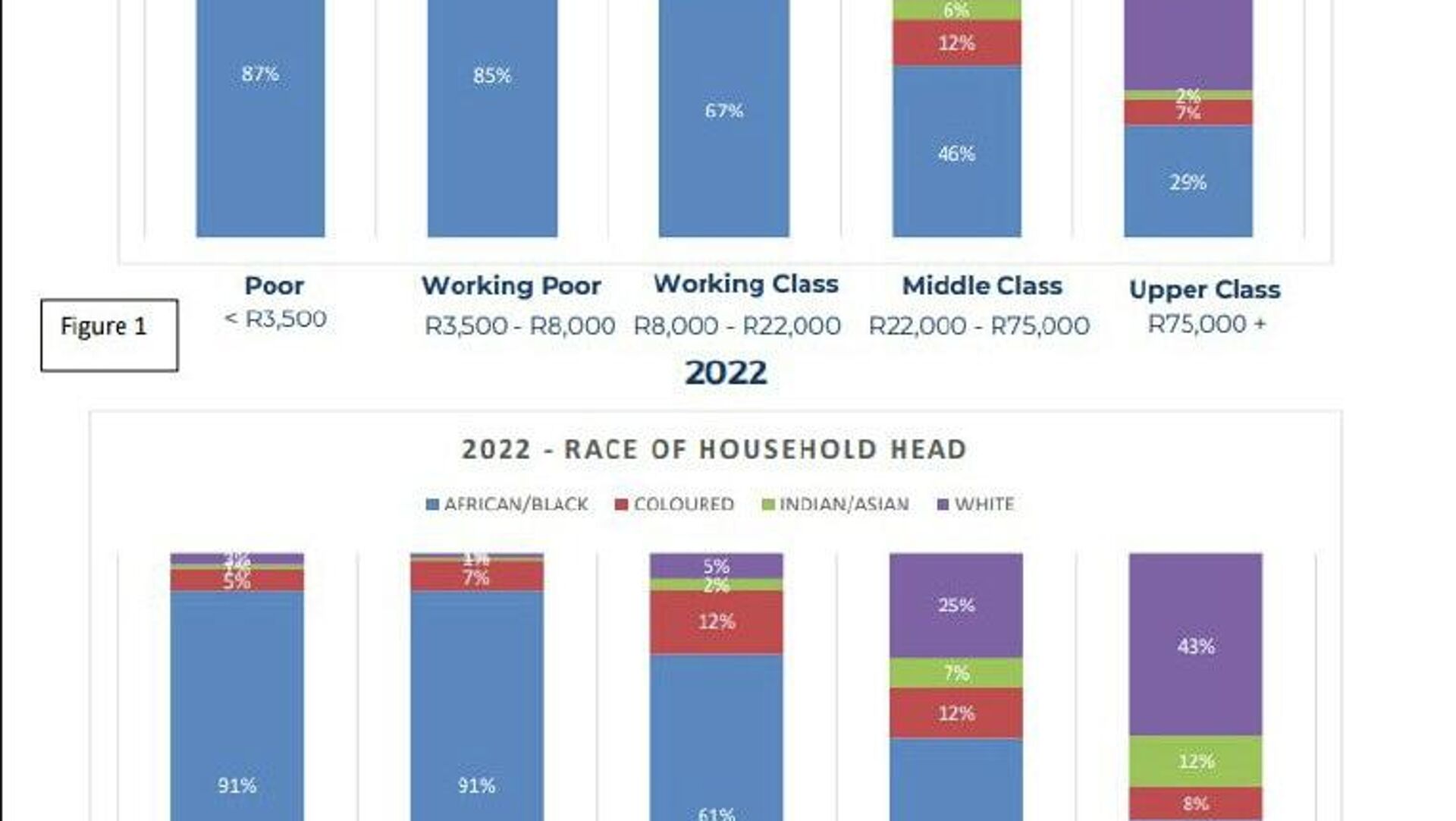 Despite gains at upper income levels, Black South Africans continue to make up the majority of the country's poor, the study reveals.