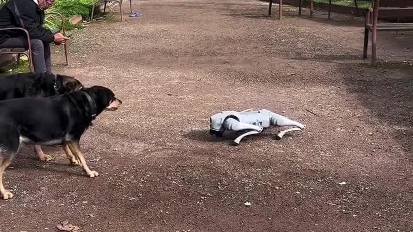 #viral | Uncanny Encounter in Italy: Real Pups Face Off Against Robotic 'Twin'Subscribe to @sputnik_africa Sputnik Africa | X 20.02.2026, Sputnik Africa