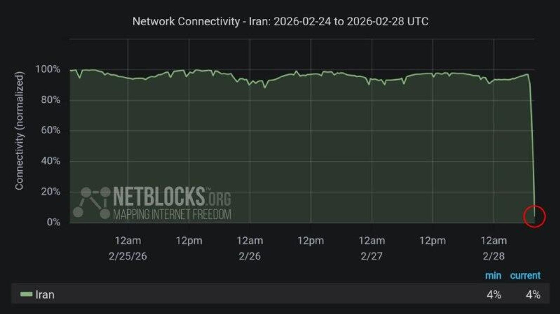09:33 28.02.2026 (Updated: 09:44 28.02.2026) Internet Connectivity in Iran Drops to 3-4% of Normal Levels: Reports