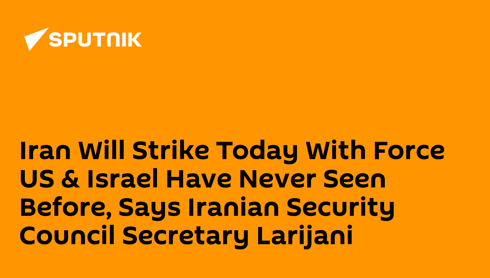 Iran Will Strike Today With Force US & Israel Have Never Seen Before, Says Iranian Security Council Secretary Larijani Earlier, the Iranian president called Khamenei's assassination a declaration of war by Israel and the United States on Muslims worldwide.He emphasized that Iran considers it its duty and legitimate right to avenge the assassination of Ali Khamenei and punish those who orchestrated it.Subscribe to @sputnik_africa Sputnik Africa | X