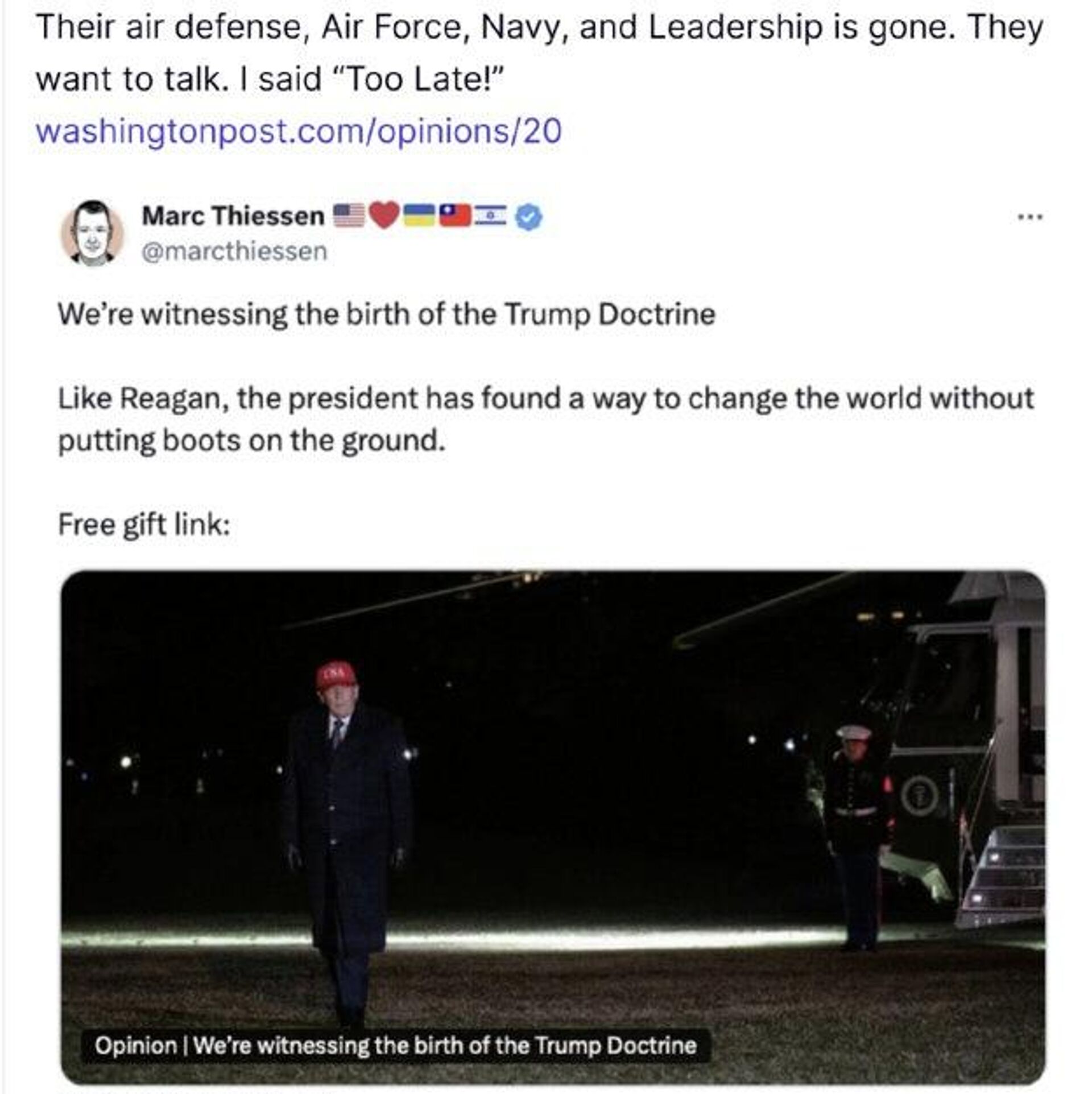 Trump Declares It's 'Too Late' for Negotiations With Iran