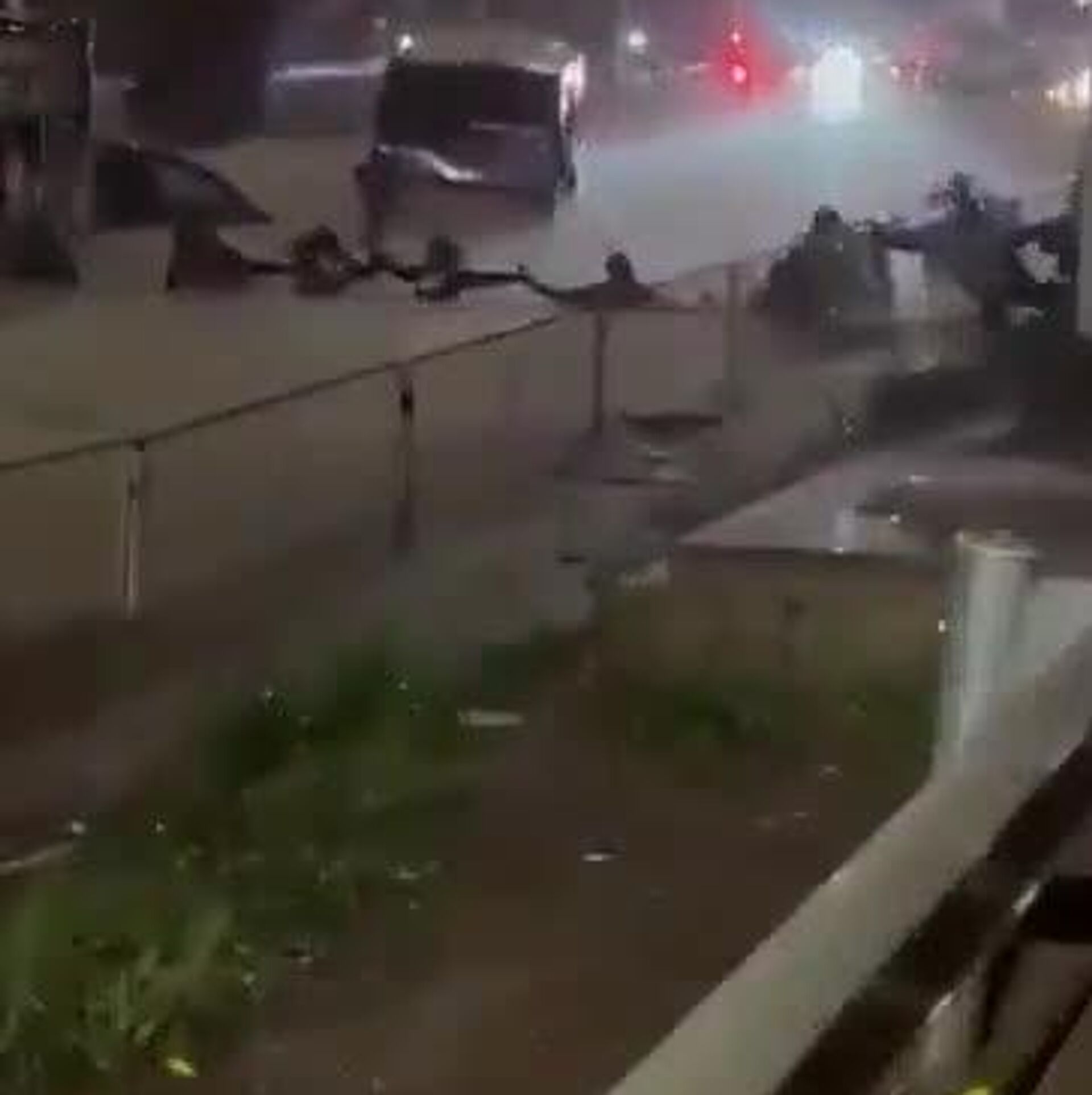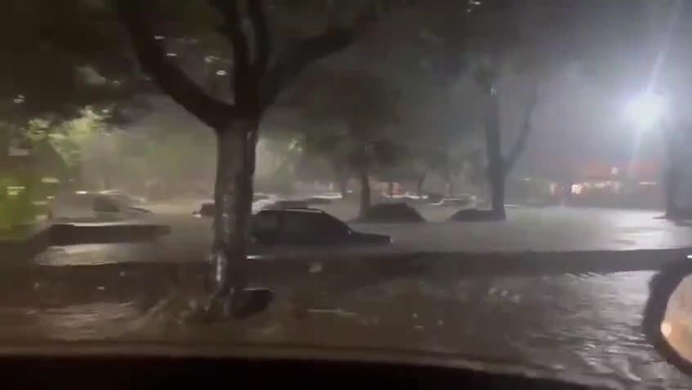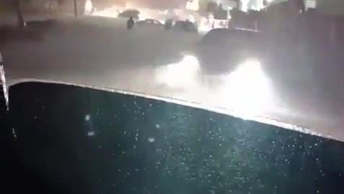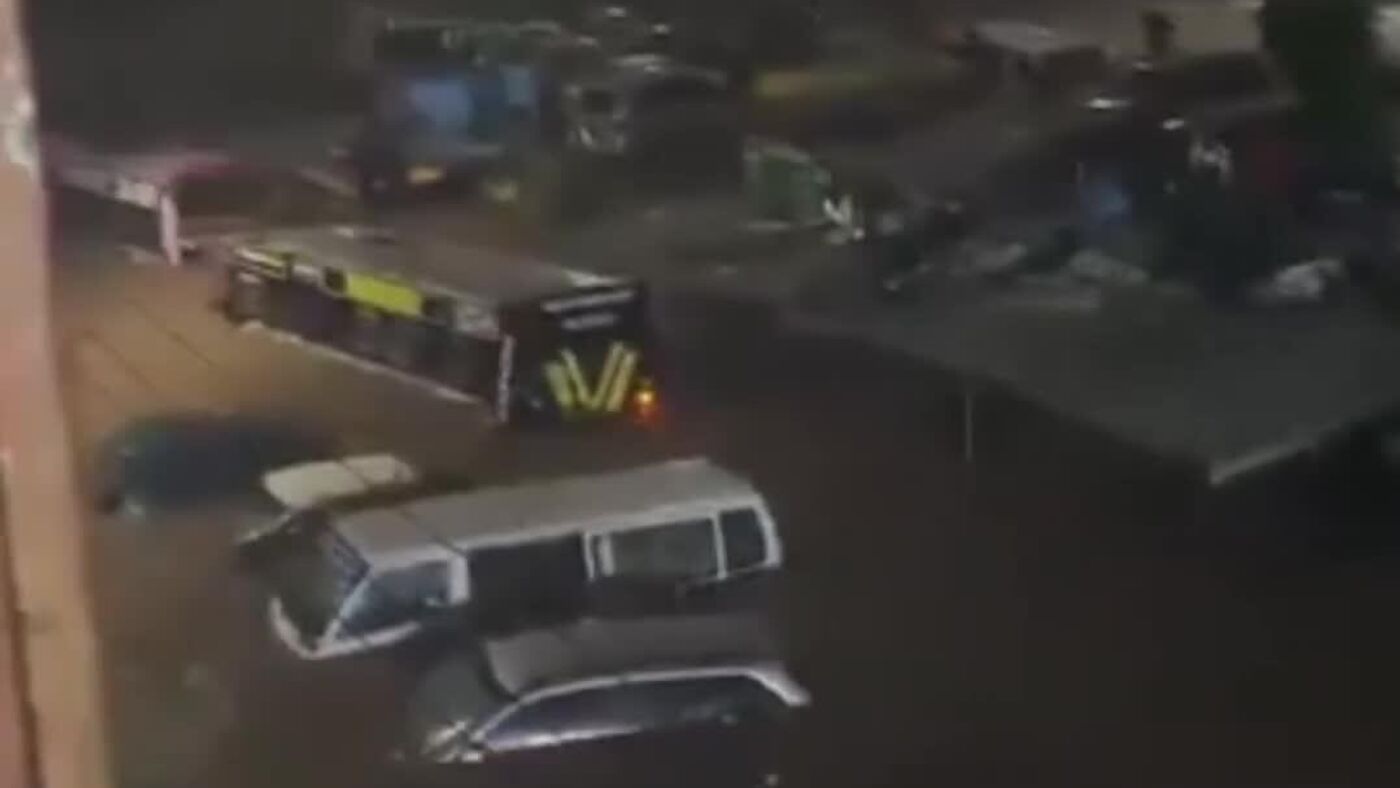 More than 100 vehicles were reportedly damaged, with some overturning on roadsides and in parking areas.