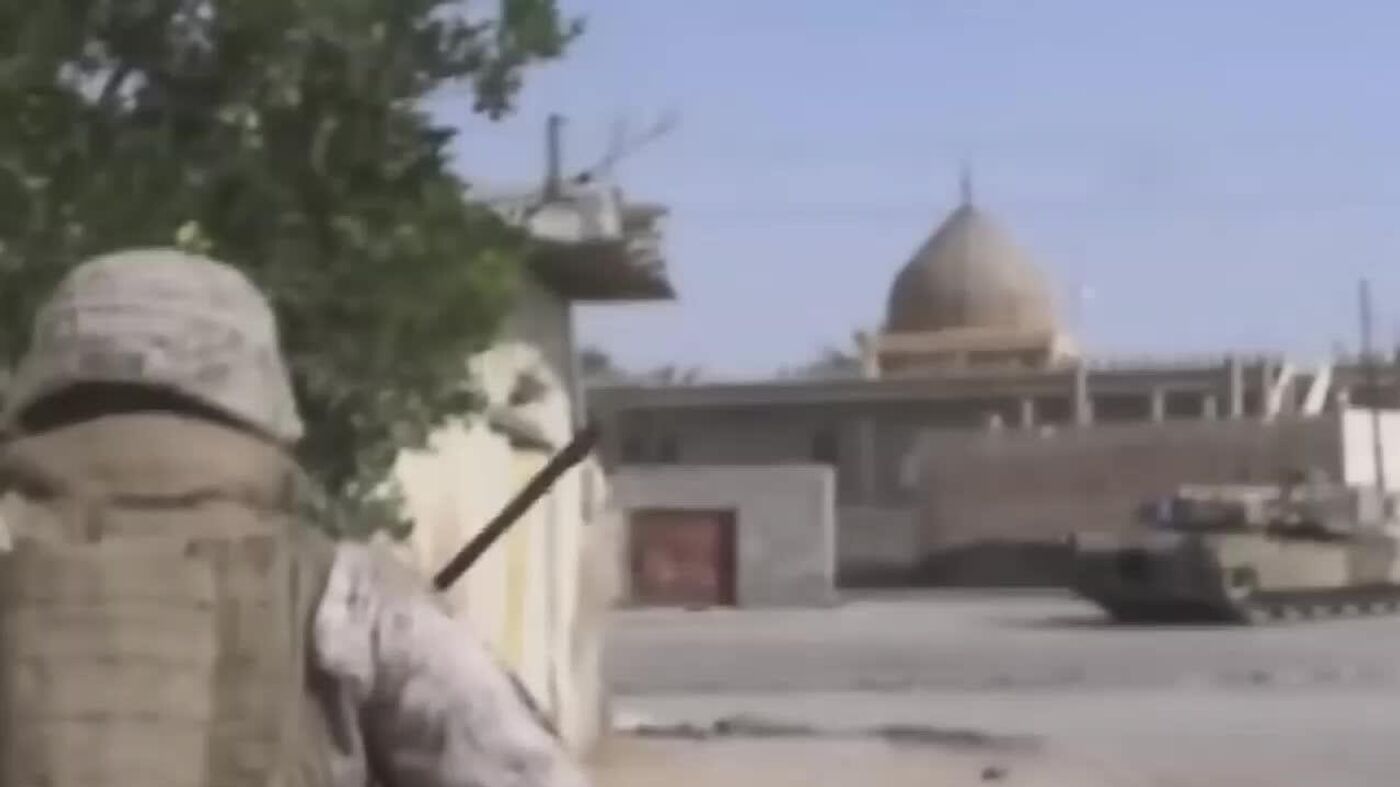 In the video: archival footage of the Iraq War, 2005.
