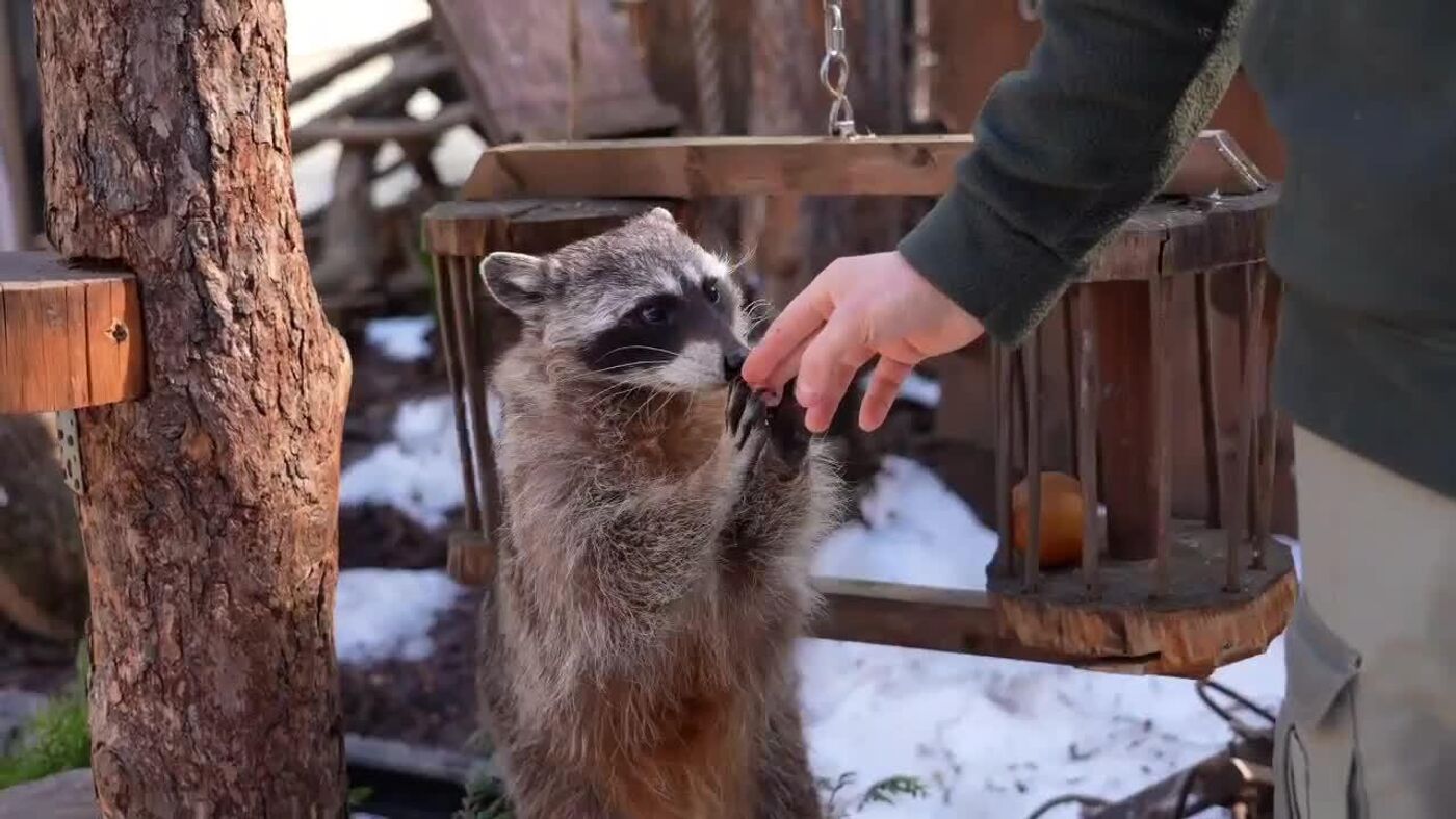 Raccoons at Moscow Zoo came out of hibernation and devoured the treats as if they hadn't eaten in years.