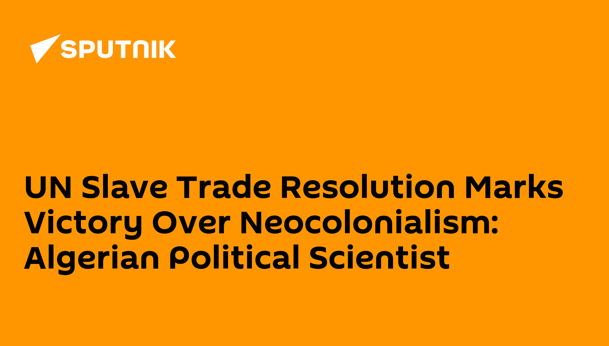 UN Slave Trade Resolution Marks Victory Over Neocolonialism: Algerian Political Scientist"It is especially significant that the initiative put forward by Ghana on behalf of the African Group received the backing of more than 100 states, including major powers such as Russia and China," Izzeddine Noumeiri, professor of international relations at the University of Skikda in Algeria, told Sputnik.On Thursday, the UN General Assembly adopted a resolution formally recognizing the transatlantic slave trade as a "the gravest crime against humanity." Subscribe to @sputnik_africa Sputnik Africa | X