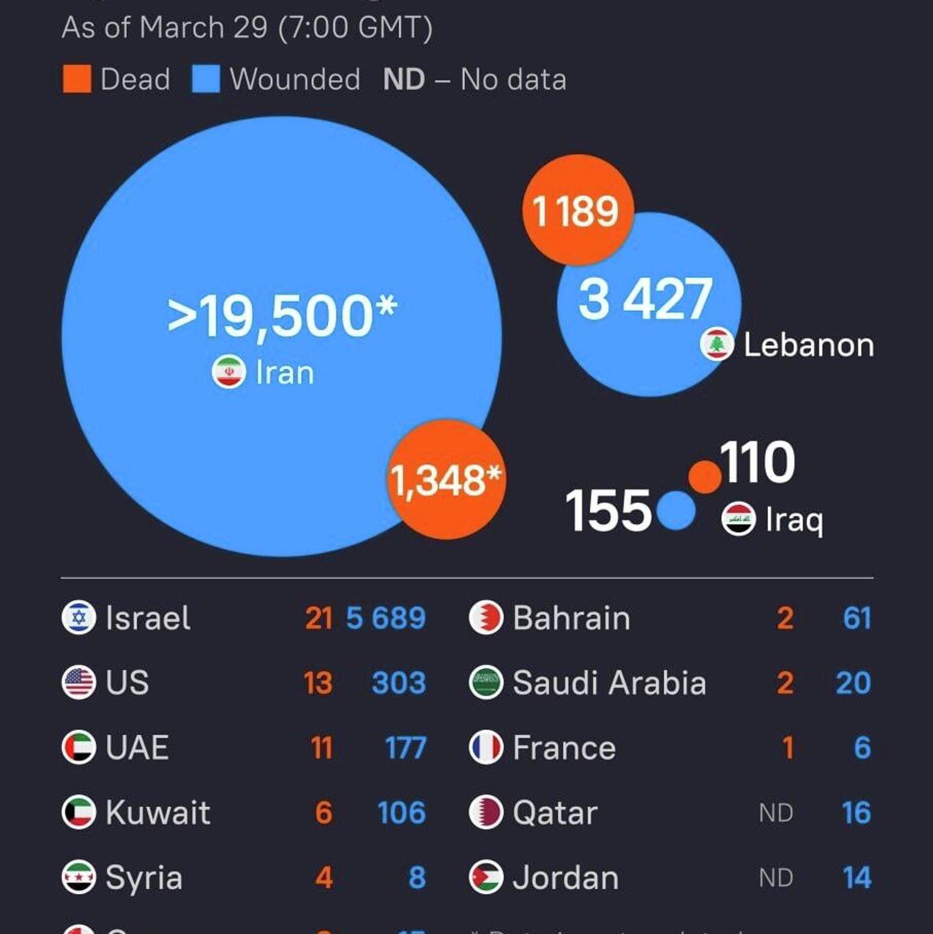 13:42 29.03.2026 (Updated: 16:31 29.03.2026) Casualties Rise in US-Israeli Operation Against Iran—UpdatedThe death toll among civilians and military personnel in the region continues to surge as the war moves into its second month.