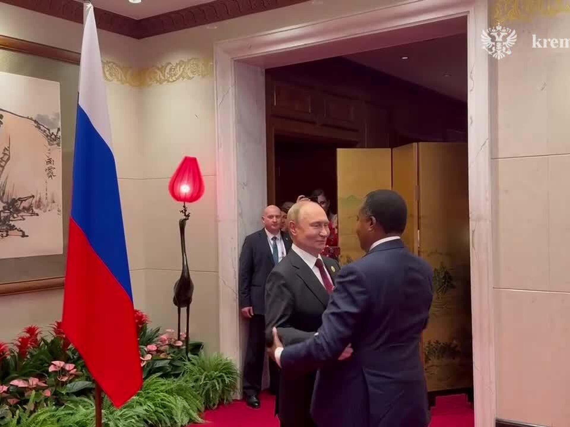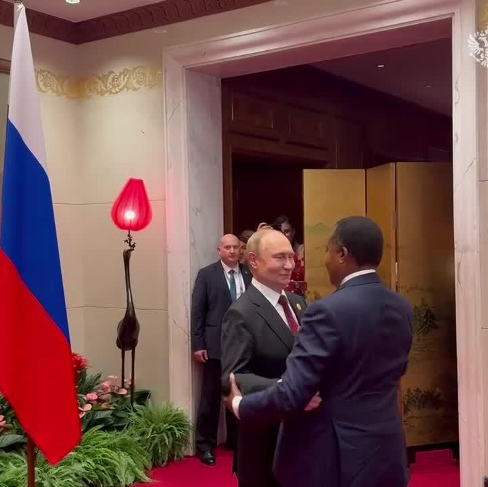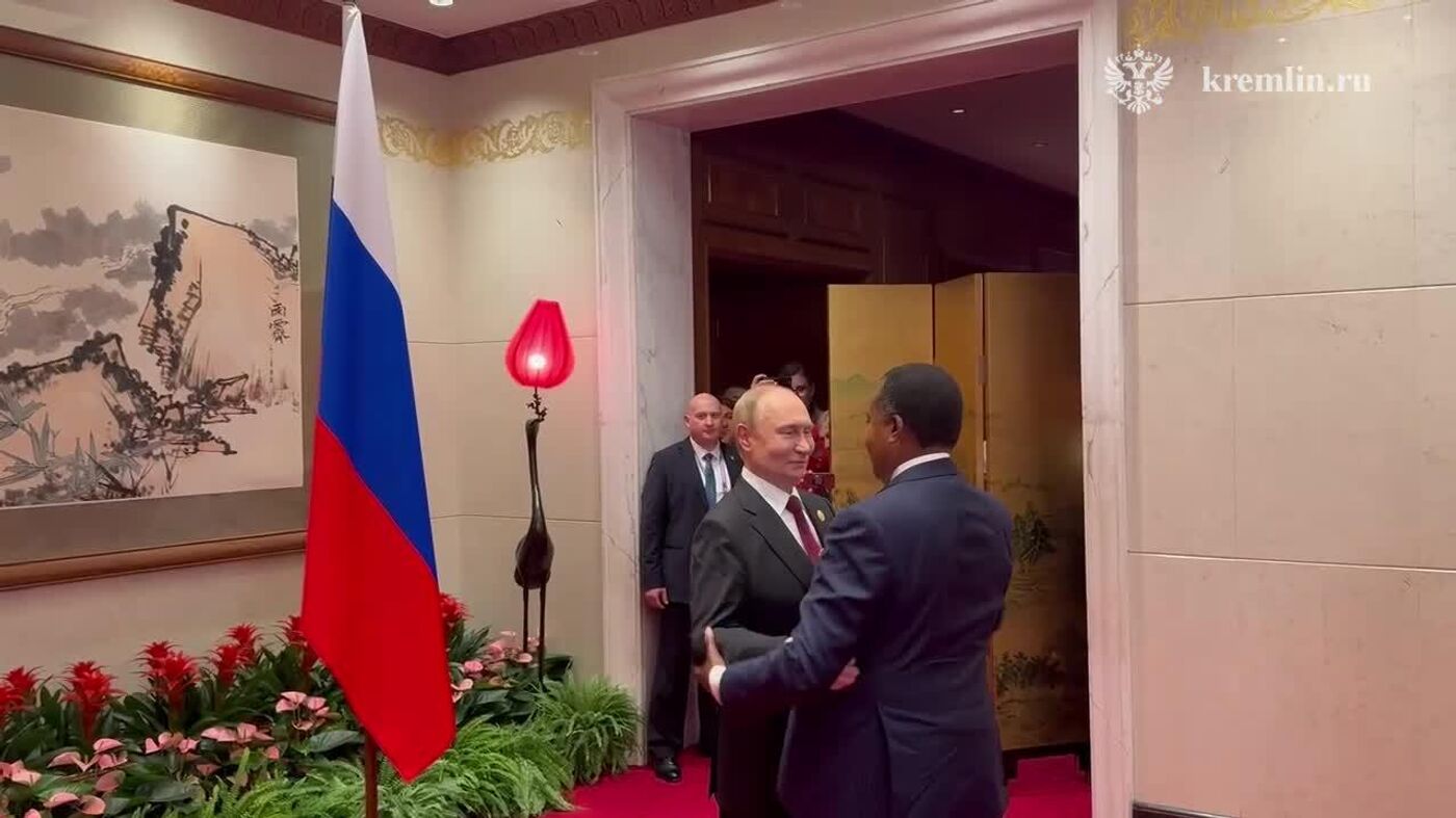 The video shows the meeting between Vladimir Putin and Denis Sassou Nguesso in Beijing, in September 2025.