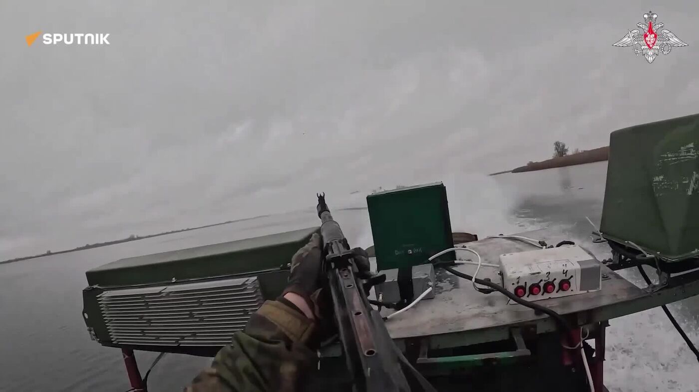 Russian boat crews repel a swarm of Ukrainian kamikaze drones and complete mission under fire in the Dnepr–Bug estuary.