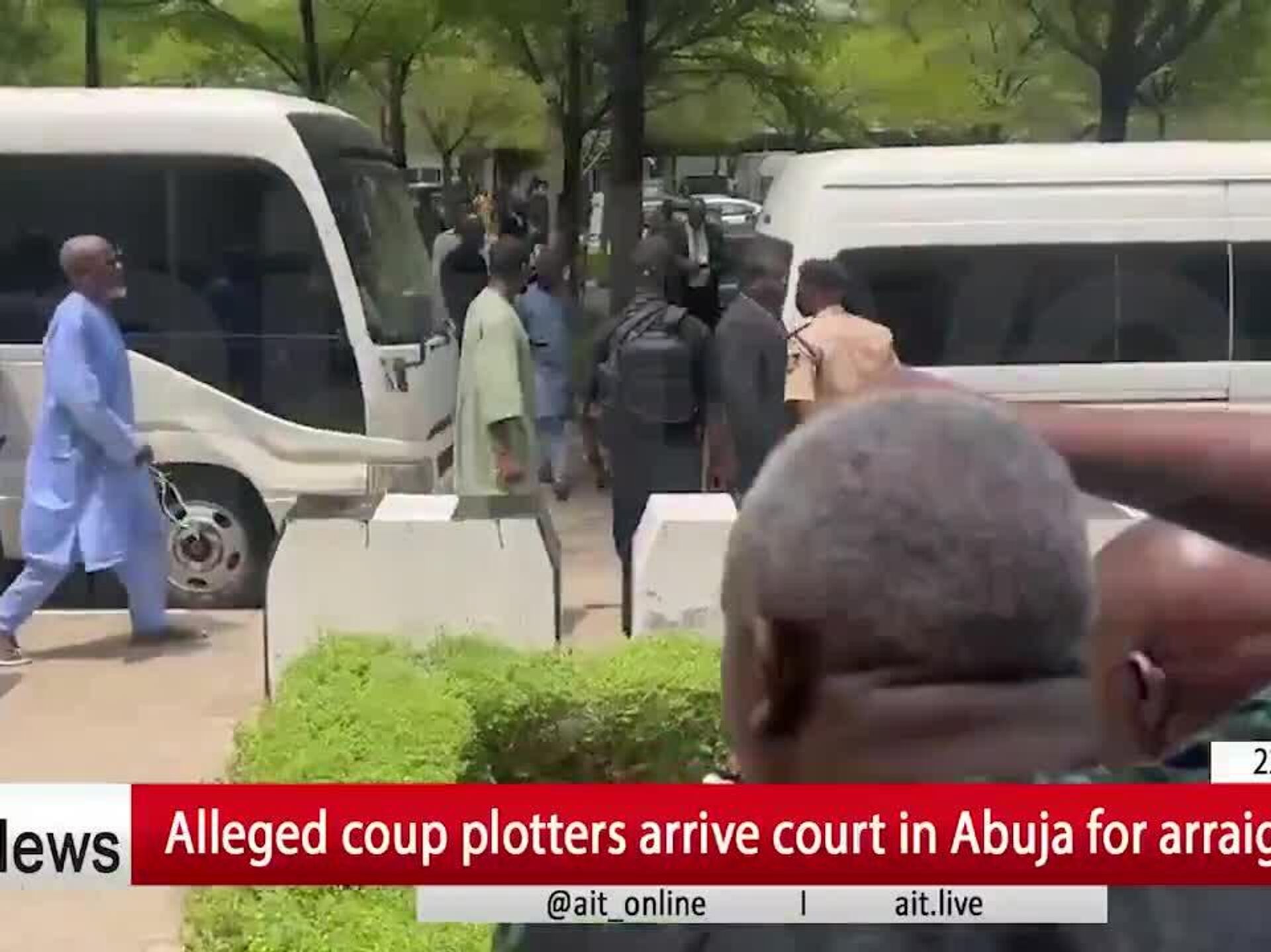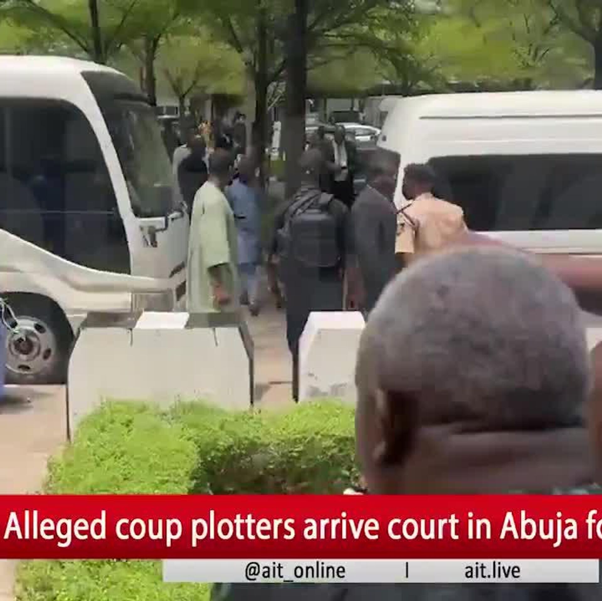 The video shows alleged coup plotters arriving to the court in Abuja.